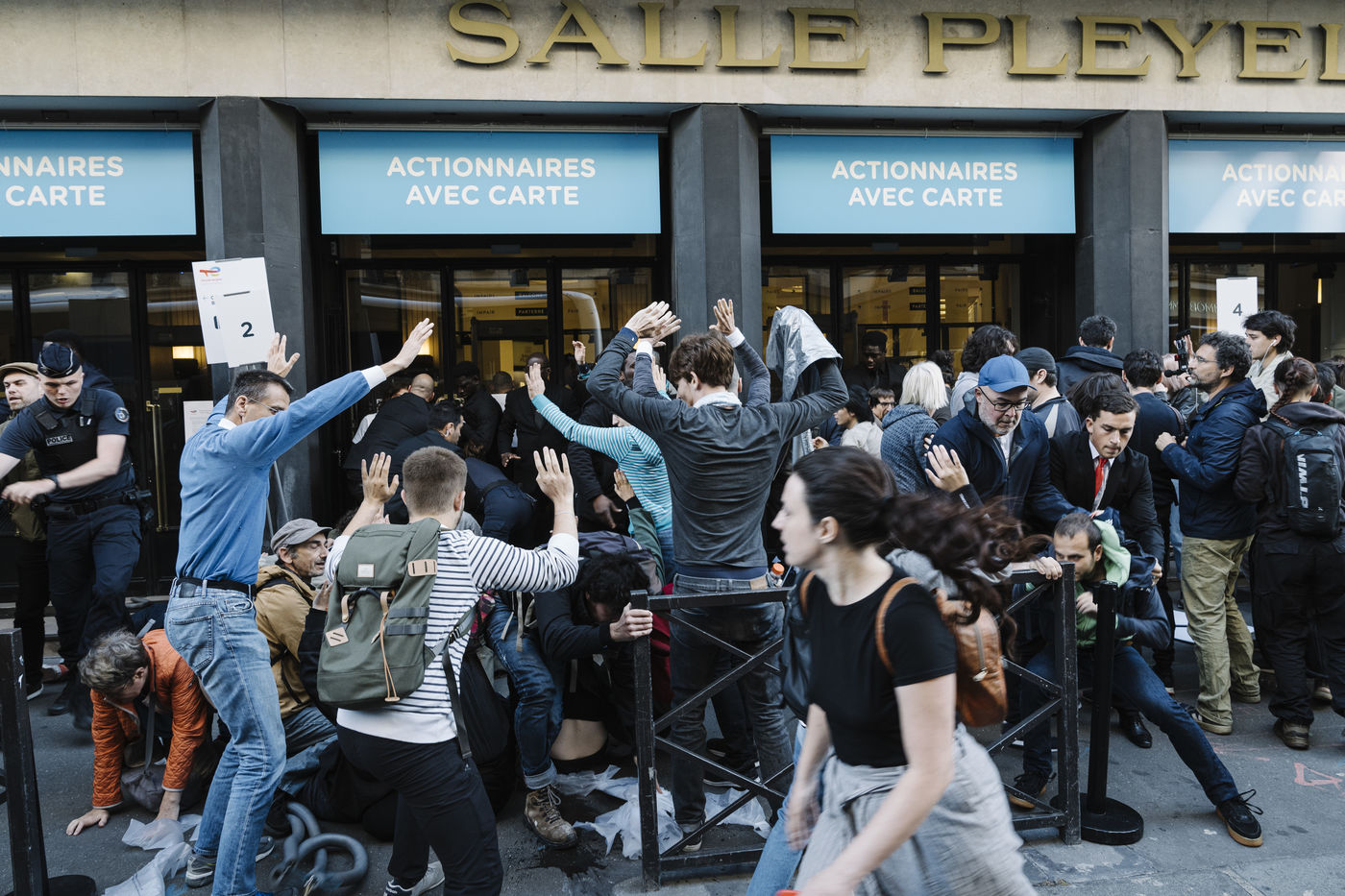 250 climate activists mobilised to block Total's Annual General Meeting, to demand from Patrick Pouyanné concrete and immediate commitments to withdraw from Total's activities in Russia and to stop all fossil fuel projects.