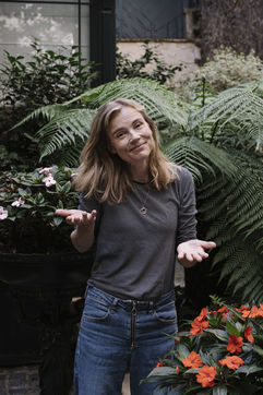 L'actrice et écrivaine Isabelle Carré dans la cour de l'Hôtel de l'Abbaye, à Paris.