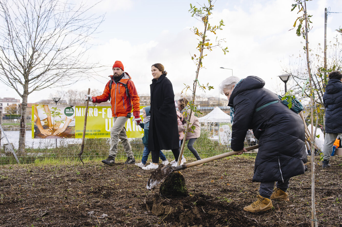 La municipalité de Vitry-sur-Seine et la direction des Espaces verts ont organisé une plantation festive d'une microforêt urbaine en bord de Seine et à celle d'un frêne offert par le collectif Vitriosart au parc Joliot-Curie.