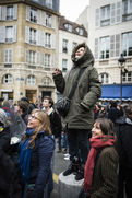 Occupation et mobilisation des artistes et techniciens intermittents du spectacle, devant le Théâtre de l'Odéon, à l'appel de CGT Spectacle. Paris, France, 25 avril 2016.