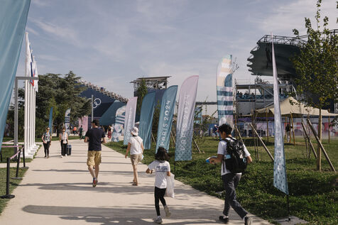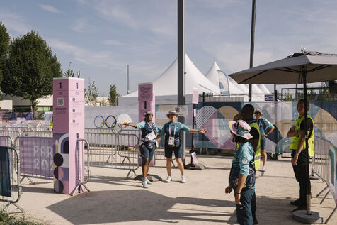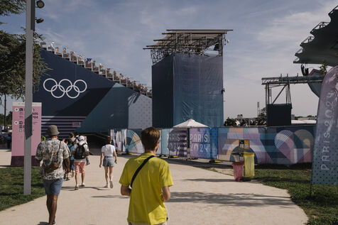 France, Le Bourget, 2024-08-06. Sport climbing event at the Le Bourget climbing site, supporters and infrastructure of the Olympic district, as part of the Paris 2024 Olympic Games.
