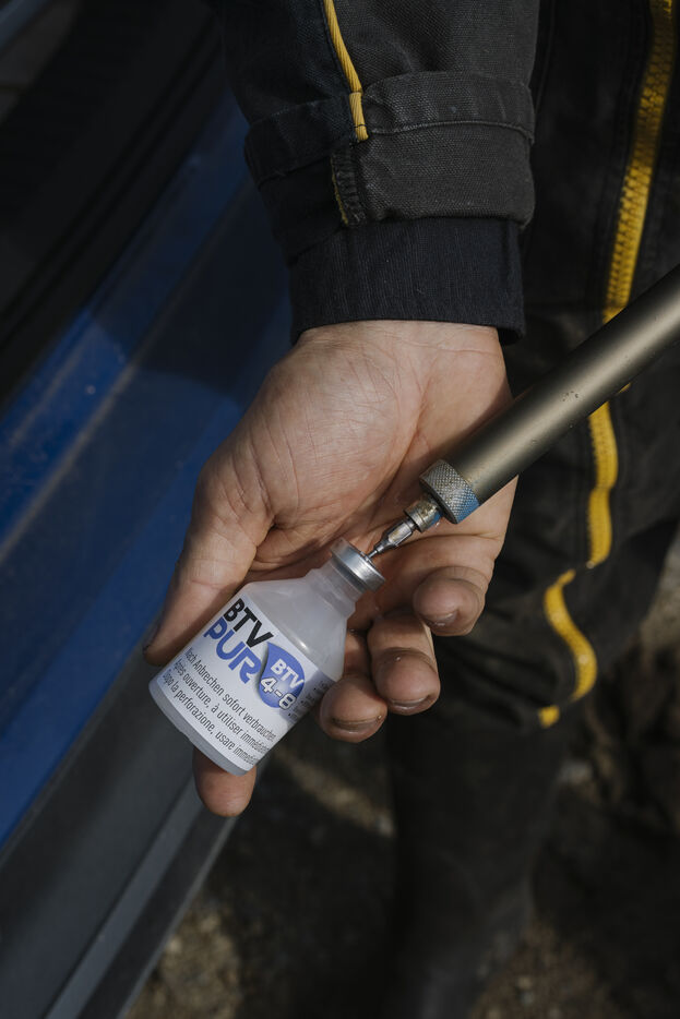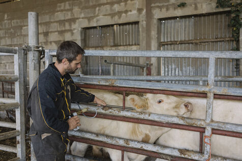 To deal with the triple epidemic in cattle (blue tongue 2 versions and haemorrhagic fever), veterinarian Guillaume Thomas-Guingand from the Cressanges veterinary practice is working with sheep and cattle farmers in his area, whose herds are affected by the FCO serotype 8 epidemic. He takes blood samples and injects vaccines.