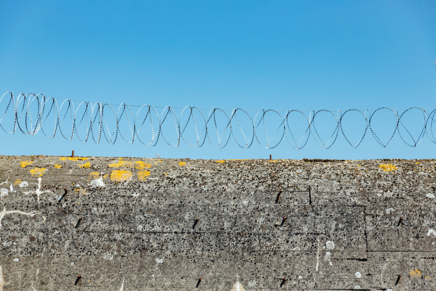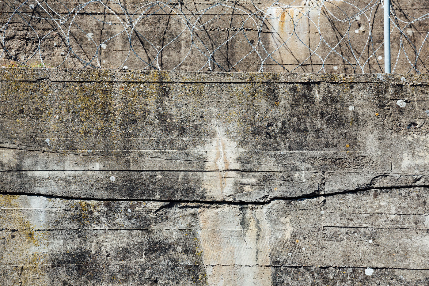 A defensive fortress of the German army sheltering its submarines, the Saint-Nazaire submarine base is now a place of cultural and tourist activities. Here details show traces of the war, barbed wire, wall cracks.