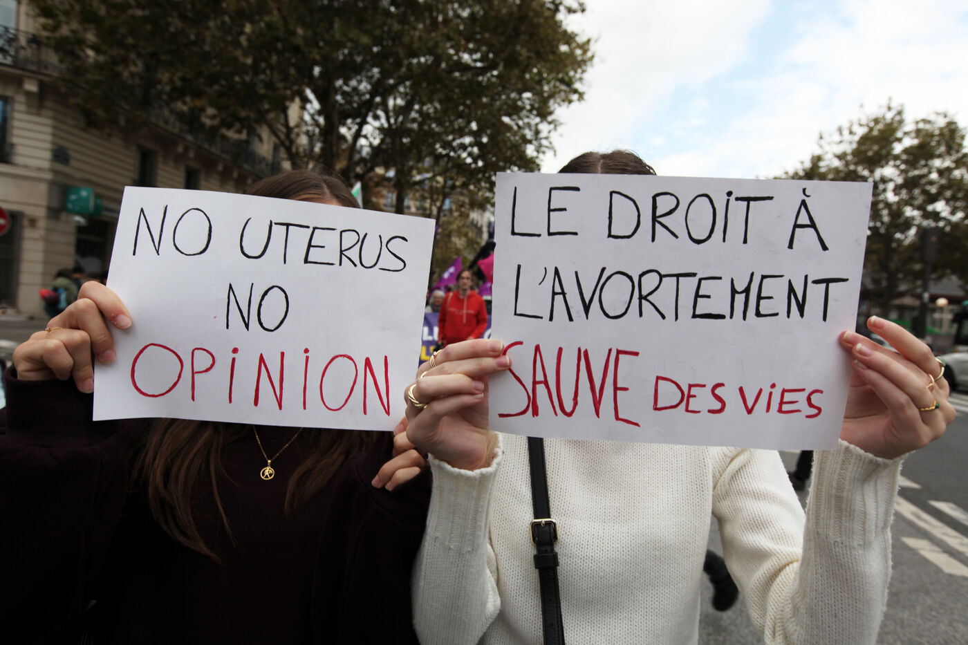 Demonstration in Paris in defense of women's rights and the right to abortion