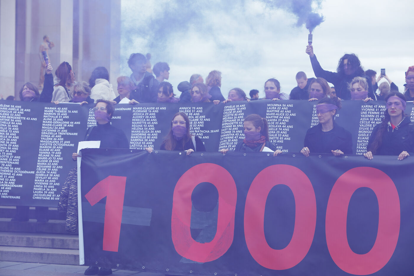 #NousToutes a organisé le 20 octobre à 16 heures un die in place du Trocadéro en mémoire des victimes des 1000 féminicides depuis le 1er quinquennat Macron. Les militantes ont déroulé une banderole de 17 mètres sur laquelle figurent les noms et âges des près de 1000 femmes victimes. Elles ont aussi porté des revendications permis lesquels l'inscription du Féminicide dans le droit pénal ou encore l'augmentation des moyens de lutte contre les violences faites aux femmes.