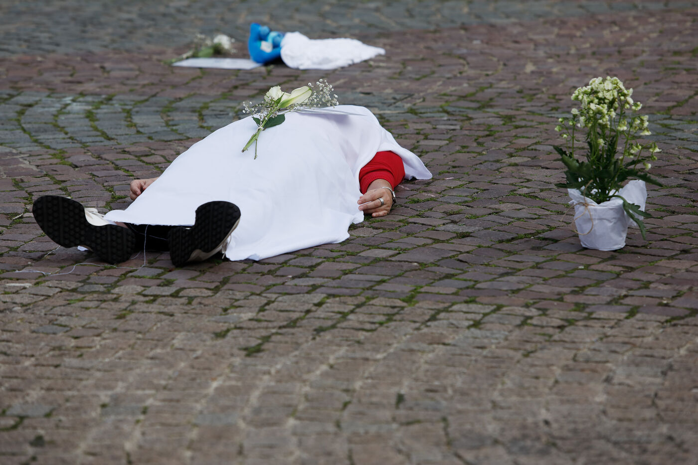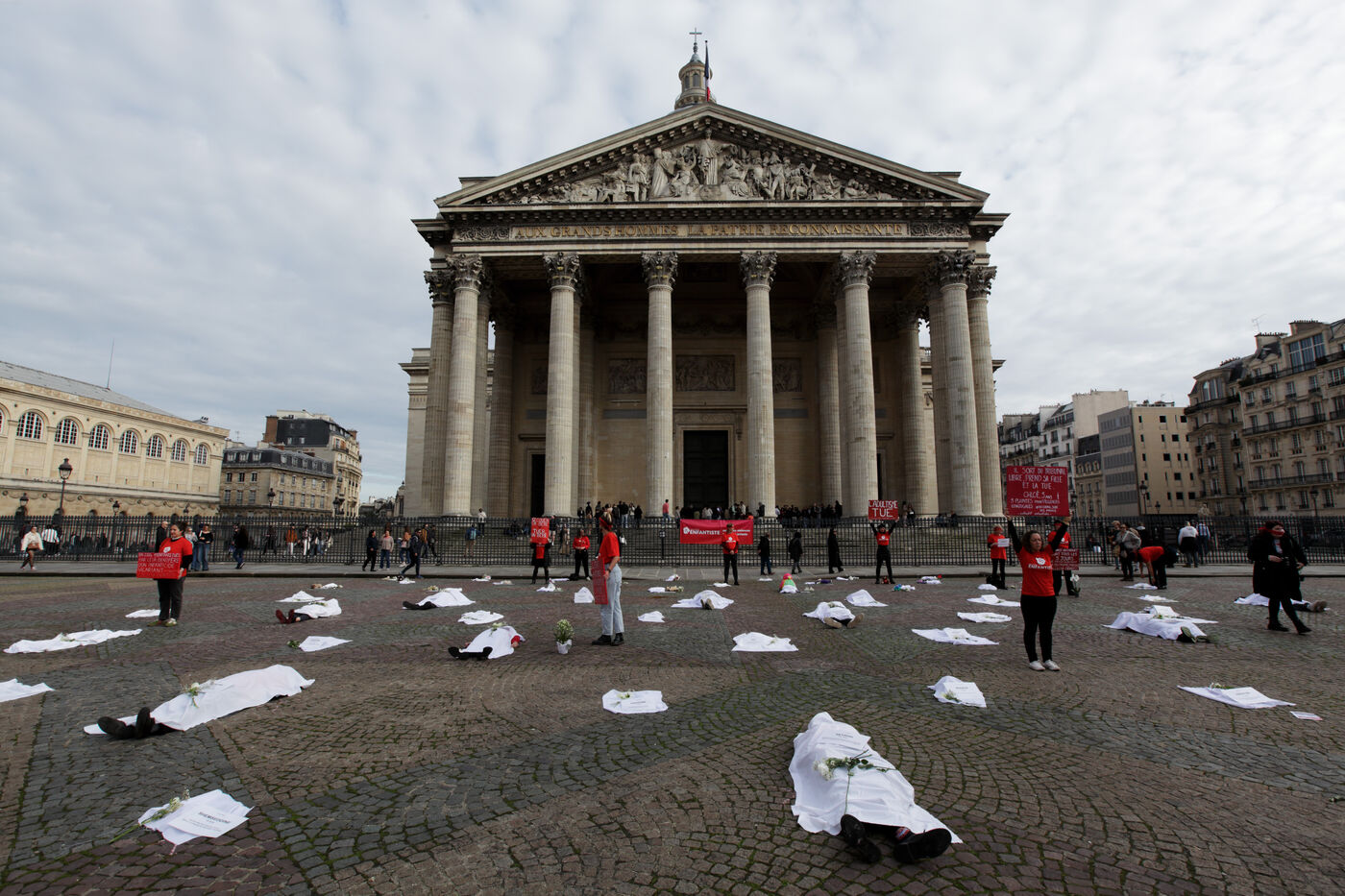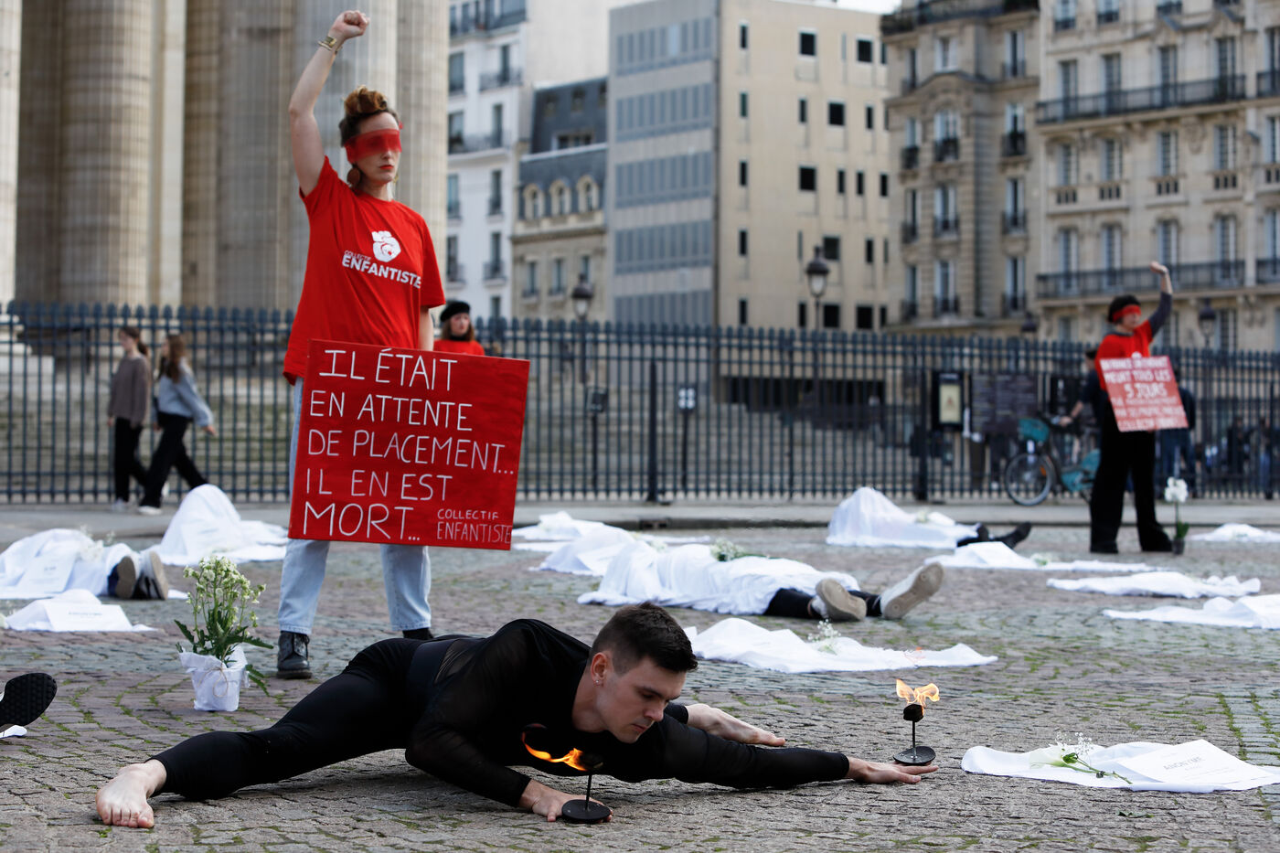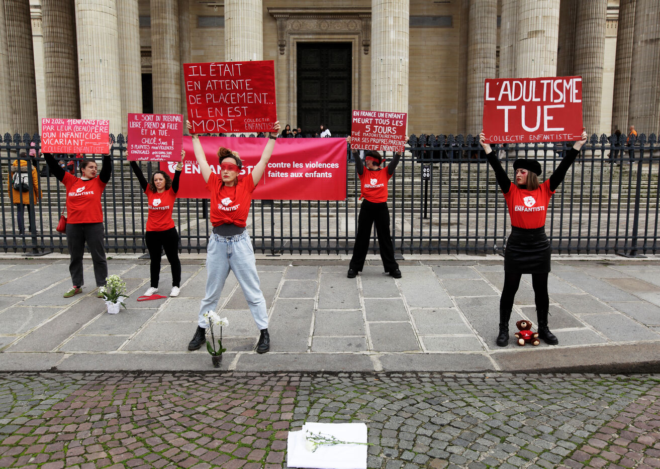 En France, un enfant meurt tous les 5 jours sous les coups d'adultes ou par négligence. Le collectif Enfantiste a décidé de s'attaquer au silence qui entoure le sujet de la maltraitance de l'enfance dans notre pays. Le 26 octobre 2024, il a organisé un Die In Place du Panthéon durant lequel les noms des enfants tués en 2024 ont été énoncés et des figurations de tombes et de corps ont été exposées.