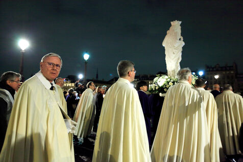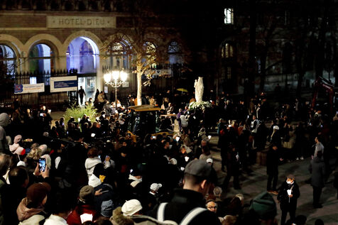 On the night of April 15 and 16, 2019, fire ravaged Notre Dame Cathedral. The statue of the Virgin and Child survived this tragedy, saved from the flames. To preserve it, a replica was forged. It is this replica which was the subject of a torchlight procession between the Church of Saint Germain l'Auxerrois and the Cathedral of Paris where a ceremony was organized and followed by a crowd of believers on November 15, 2024