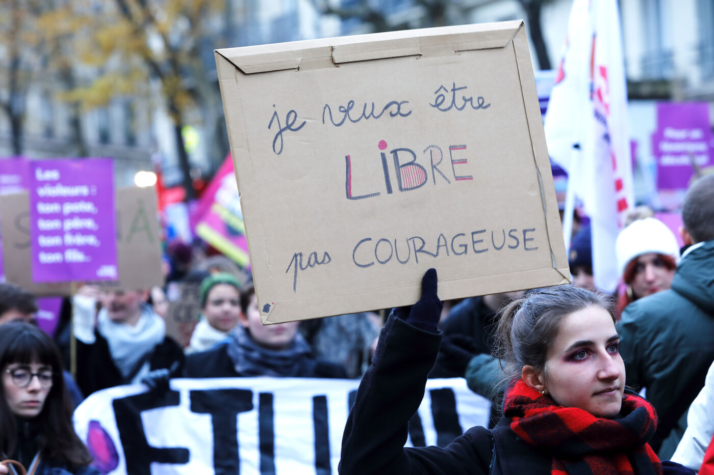 La déclaration de l'ONU sur l'élimination de la violence à l'égard des femmes de 1993 définit les violences comme : "Tous les actes de violence dirigés contre le sexe féminin, et causant ou pouvat causer aux femmes un préjudice ou odes sauffrances physiques, sexuelles ou psychologiques, y compris la menace de tels actes, la contrainte ou la privation arbitraire de liberté, que ce soit dans la vie publique ou la vie privée". Ces violences sont pourtant omniprésentes dans l'actualité, et pas seulement dans certains pays où l'apartheid de genre est pratiqué. C'est pour appeler à traiter le problème que les collectifs féministes appellent régulièrement à défiler, comme ce 23 novembre. En France, les statistiques officielles montrent que 321 000 femmes sont victimes chaque année de violences. Deux femmes sont tuées chaque semaine par leur conjoint; le plus souvent après avoir subi une maltraitance répétée.