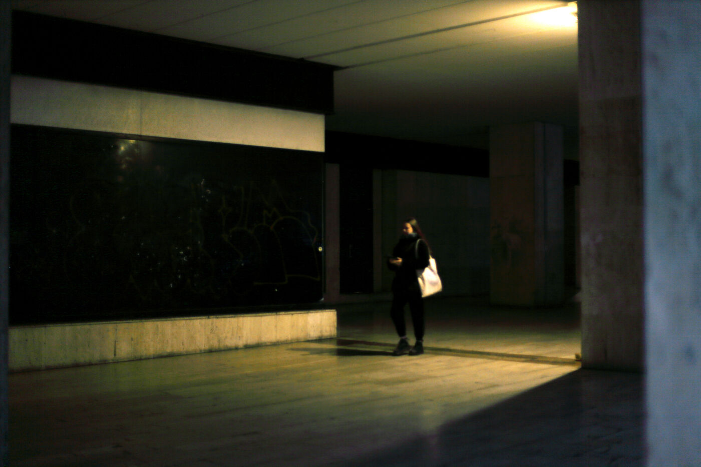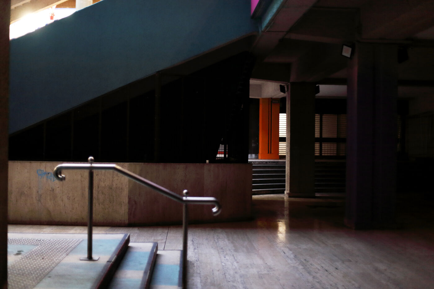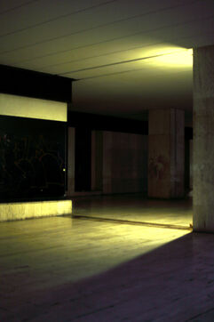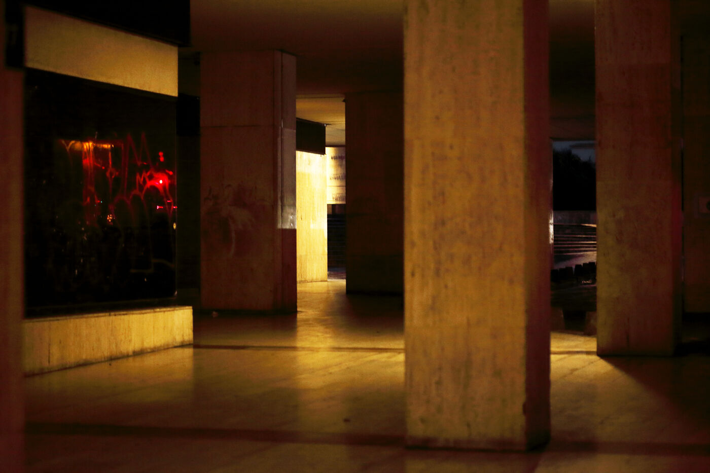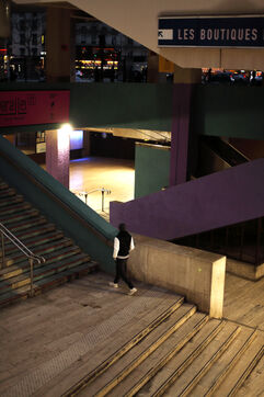 The Tour Maine Montparnasse real estate complex was definitively built in 1973 after four years of work. It contains the Montparnasse Tower, 210 m high, and the shopping center inaugurated in 1972. This architectural ensemble marks the vision of an era, that of the end of the 1960s with the tertiarisation of the economy and the vision of a new modernity. This complex is today the subject of a restrusturation and renovation project and many commercial spaces are empty, awaiting the renewal which was announced in 2018 but did not come. The space thus abandoned gives way to what looks like a ghost gallery.