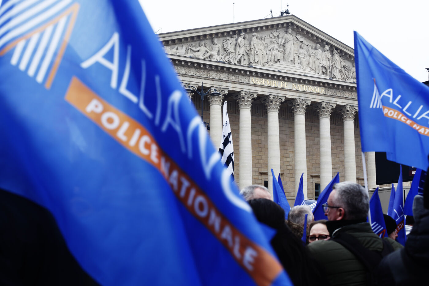 Manifestation du syndicat de police Alliance Police Nationale devant l'Assemblée nationale