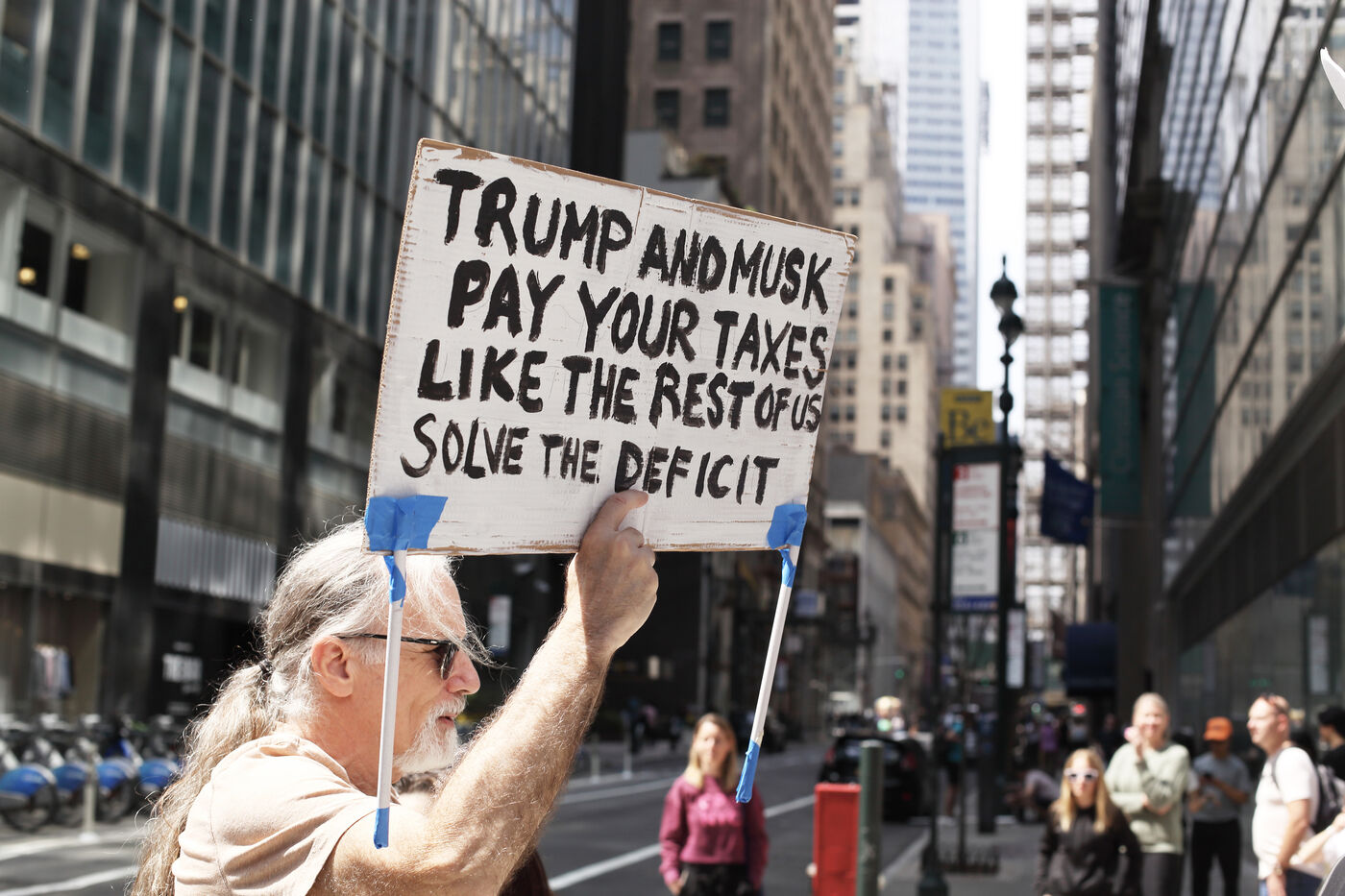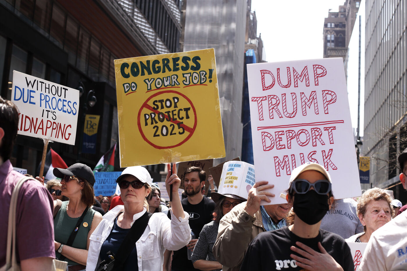 Alors que le président Trump continue de mettre en place une politique dure à l'égard des échanges commerciaux comme de la population immigrée aux Etats Unis, des mouvements de manifestations se déroutent dans le pays. Une manifestation a été organisée à New York le 19 avril 2025 dans les rues de Manhattan, rassemblant des milliers de personnes qui ont croisé les new yorkais et touristes qui déambulaient dans les rues.