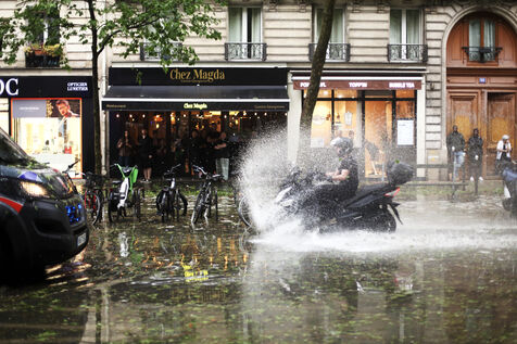 On Saturday, May 3, a hailstorm hit Paris. Hailstones several centimeters thick fell, forcing passersby to take shelter and then flooding the streets and some metro entrances. The storm lasted about fifteen minutes.