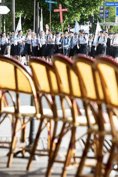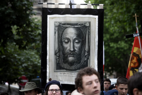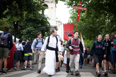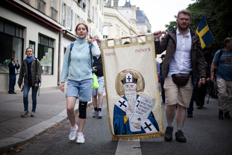 The traditional Paris-Chartres Pentecost pilgrimage departing from Paris