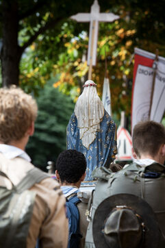 Le pélerinage de Chartes est parti de Paris. Les pélerins vont marcher deux jours pour parvenir à Chartes. Il est organisé par l'association Notre Dame de la Chrétienté depuis 1994 et regroupe des pèlerins de nombreuses nationalités réunis sous des bannières symboliques.