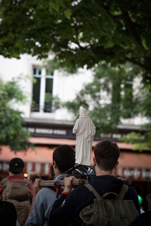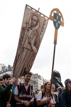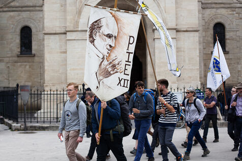 The Chartres pilgrimage departed from Paris. The pilgrims will walk for two days to reach Chartres. It has been organized by the Notre Dame de la Chrétienté association since 1994 and brings together pilgrims of all nationalities united under symbolic banners.