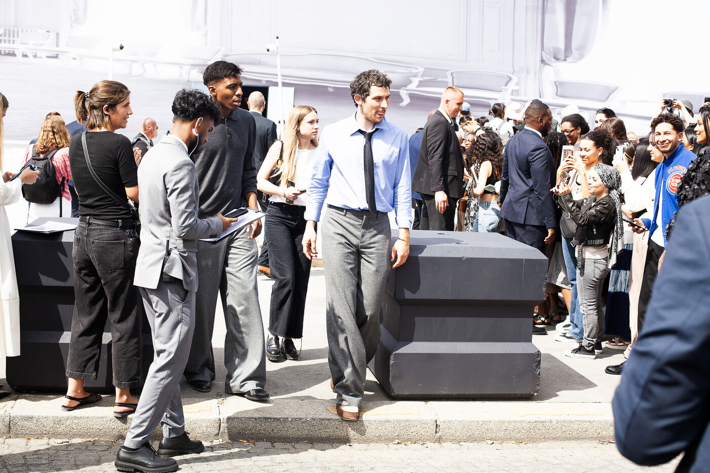 La semaine de la mode masculine se tient du 24 au 29 juin 2005 à Paris. Elle présente les collections printemps été 2026 des grandes marques de prêt à porter. Si le spectacle est évidemment sur les podiums, il est aussi dans la rue où de nombreux fans de mode viennent assister aux entrées et sorties des lieux de défilés pour voir les personnalités invitées. La maison Dior a organisé la présentatioon de sa collertion printemps été 2026 dans le parc des Invalides. Les fans étaient regroupés place Vauban pour assister à la venue des invités.