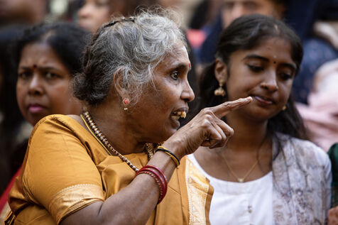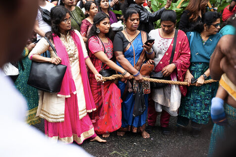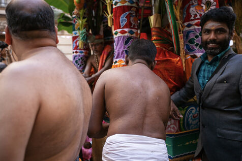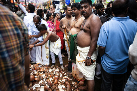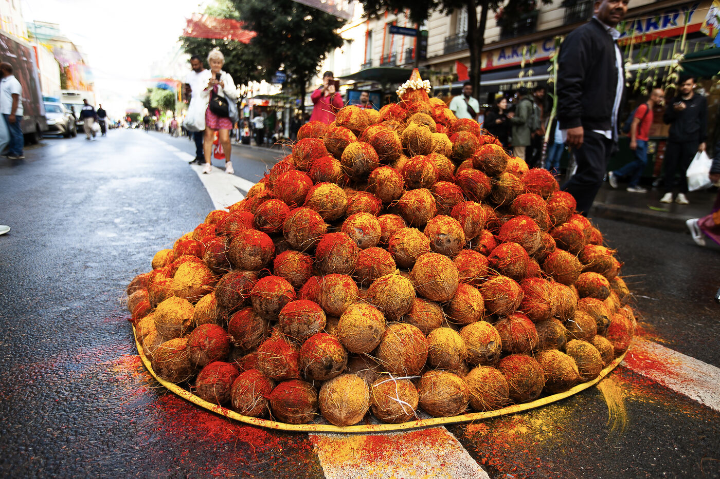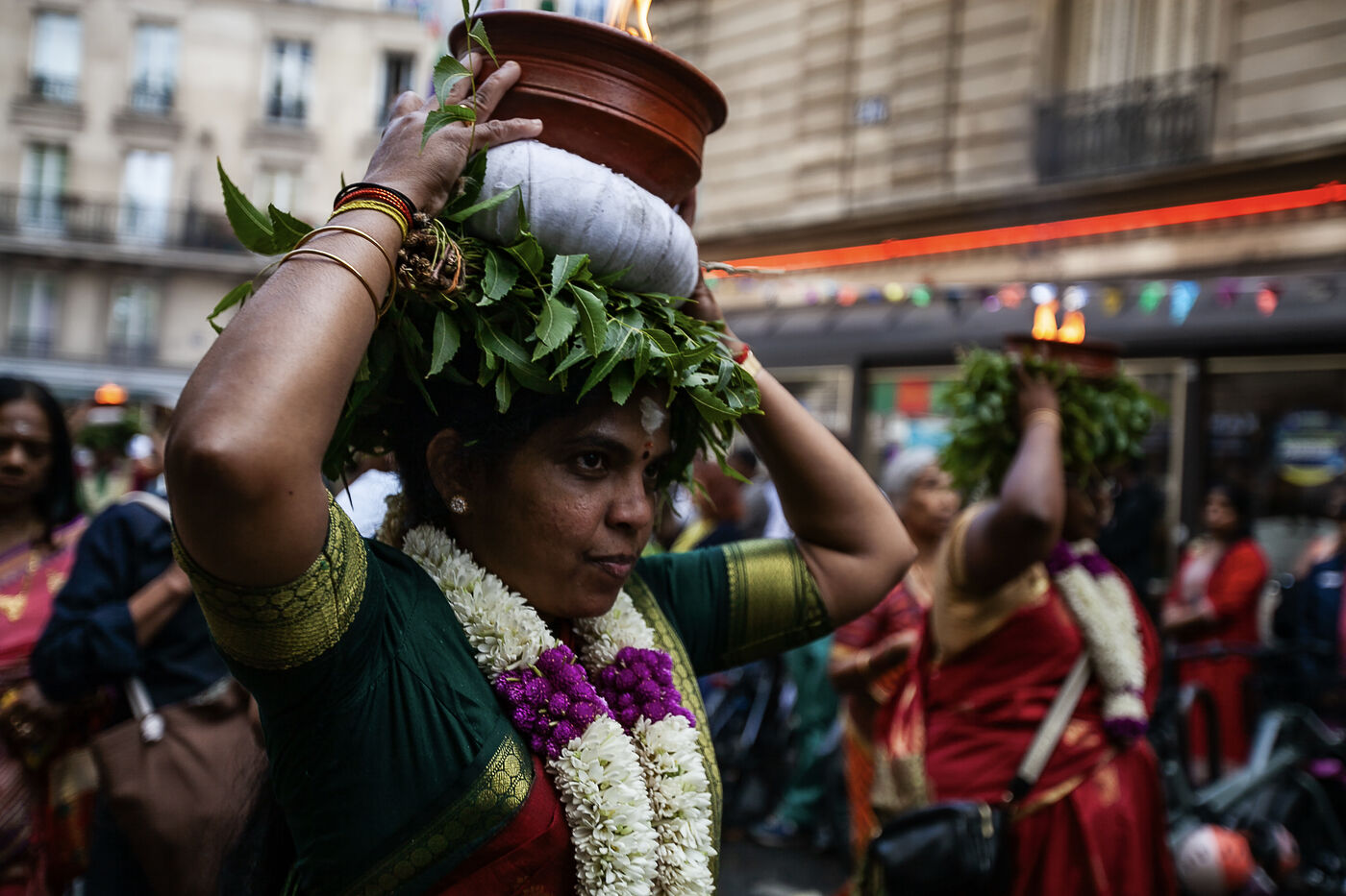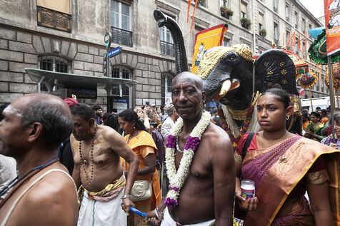 Ganesh, dieu hindou au corps humain et à tête d'éléphant est fêté chaque année dans les rues de Paris. Il attire les bons auspices sur les fidèles. la Communauté part du temple dédié à Ganesh dans le XVIIIe arrondissement de Paris et parcourt le quartier lors d'un dimanche de partage et de fête pour des milliers de participants à la procession.
