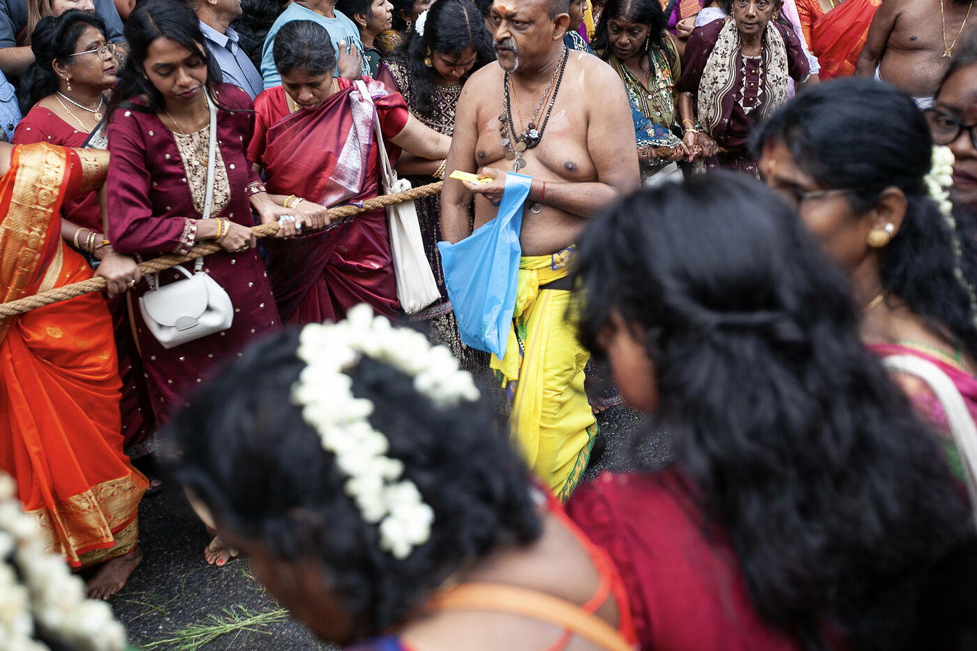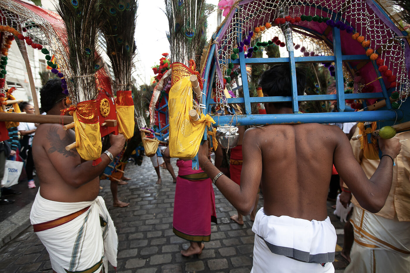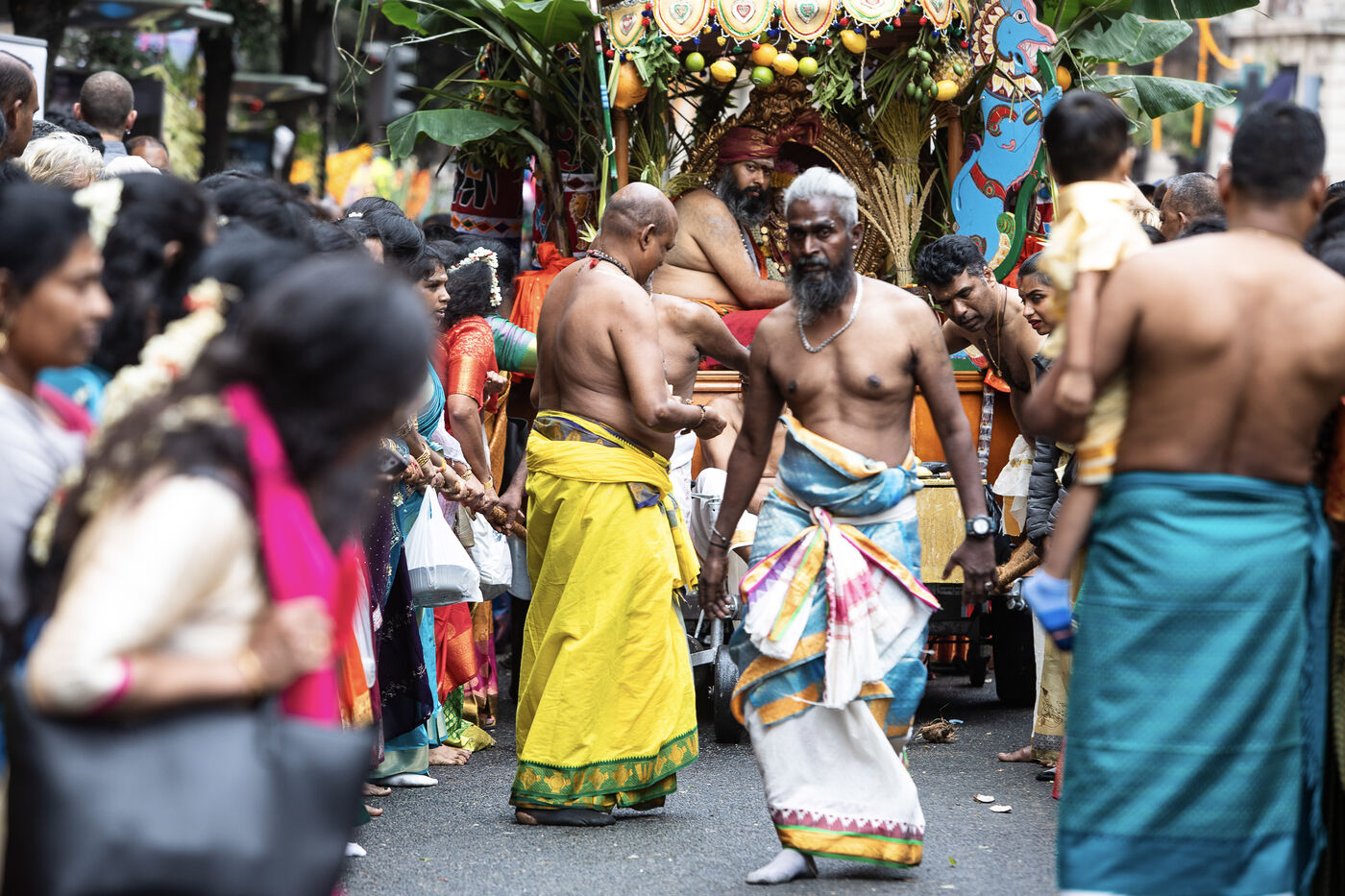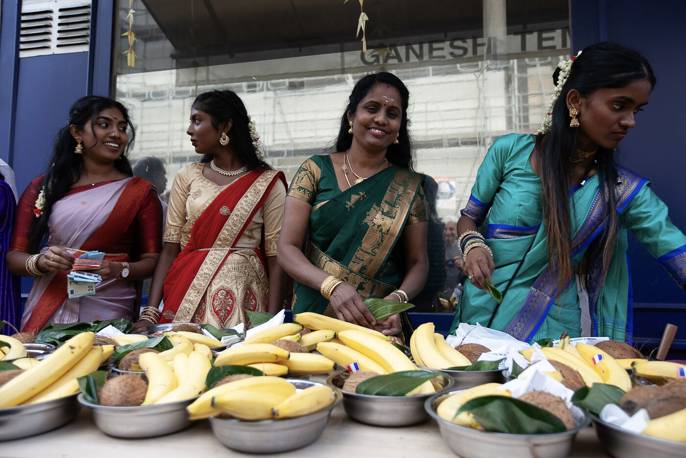 Ganesh, the Hindu god with a human body and an elephant's head, is celebrated every year in the streets of Paris. He brings good fortune to the faithful. The community departs from the temple dedicated to Ganesh in the 18th arrondissement of Paris and travels through the neighborhood during a Sunday of sharing and celebration for thousands of participants in the procession.