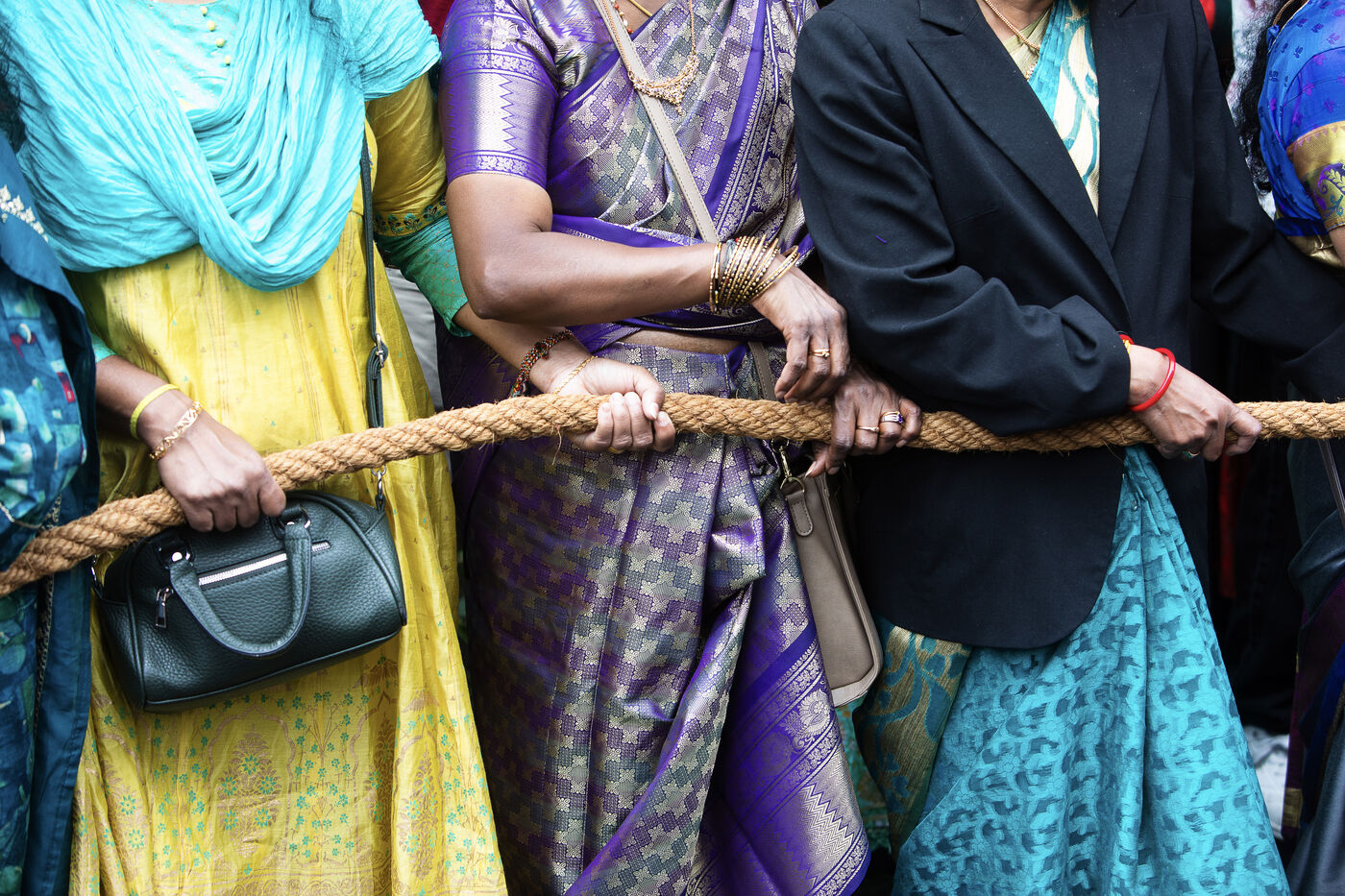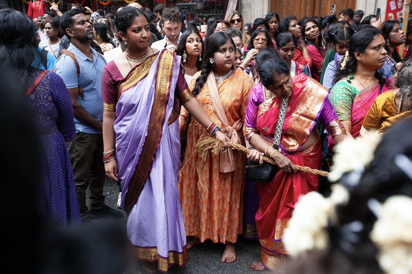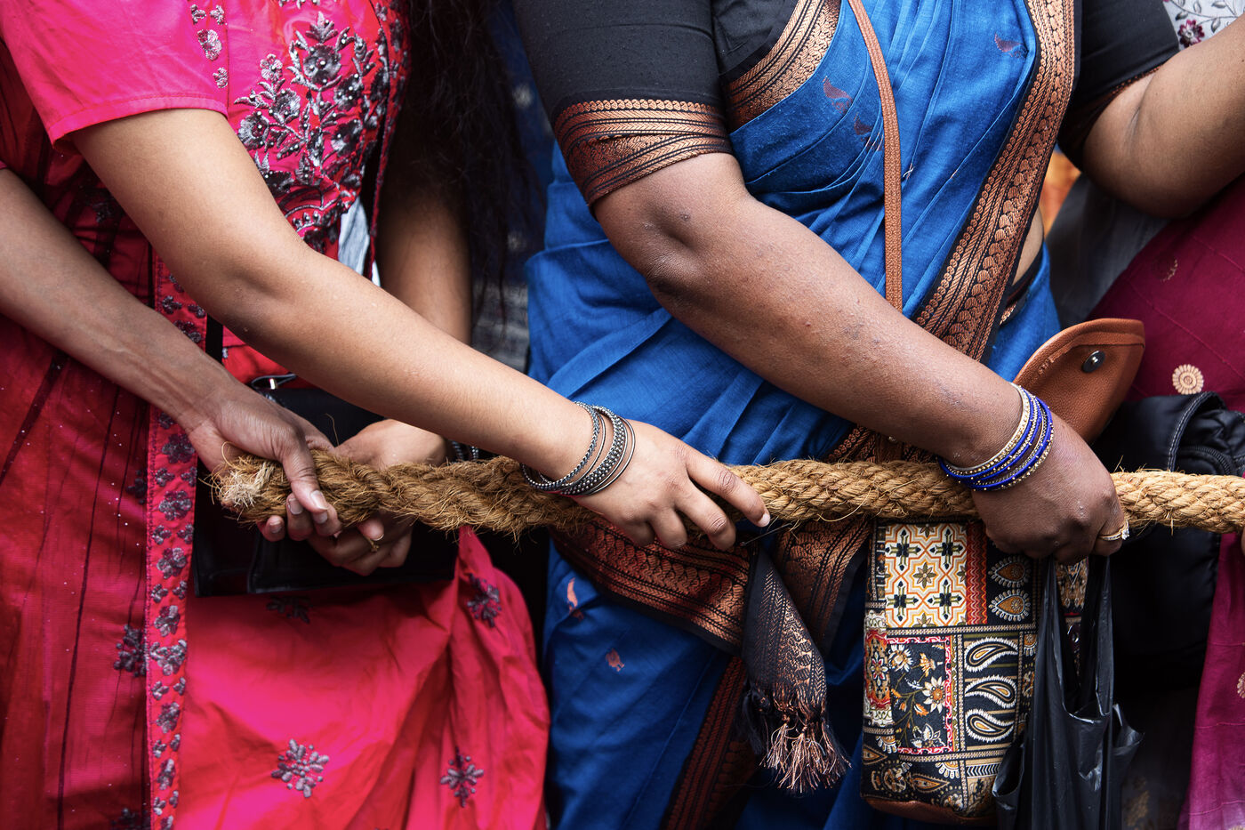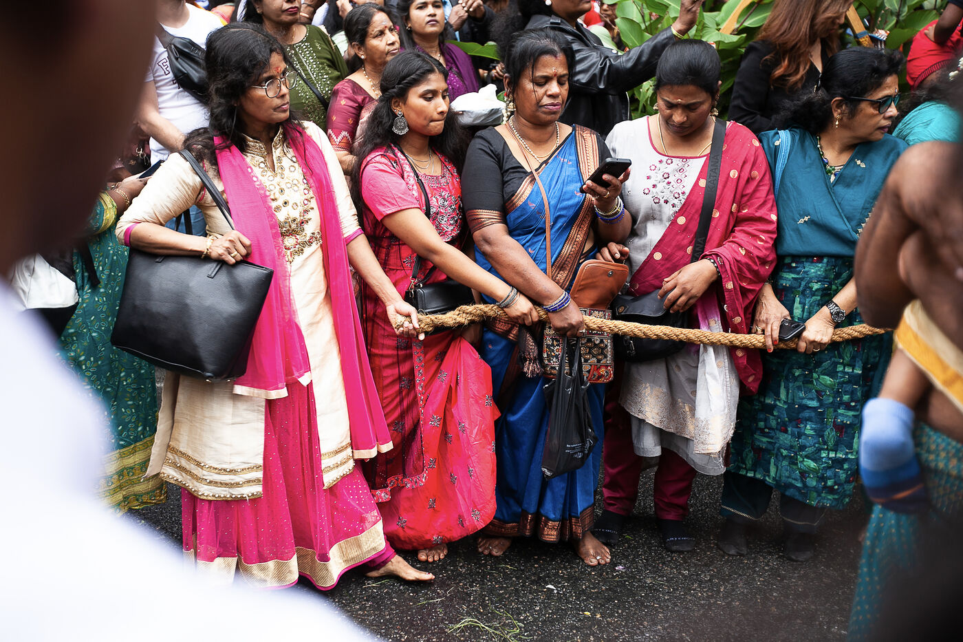 Ganesh, the Hindu god with a human body and an elephant's head, is celebrated every year in the streets of Paris. He brings good fortune to the faithful. The community departs from the temple dedicated to Ganesh in the 18th arrondissement of Paris and travels through the neighborhood during a Sunday of sharing and celebration for thousands of participants in the procession.