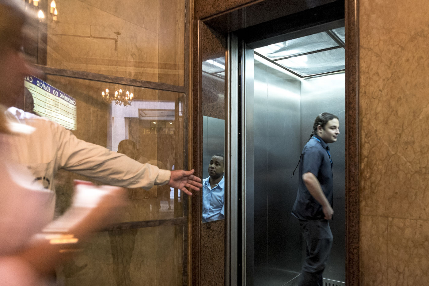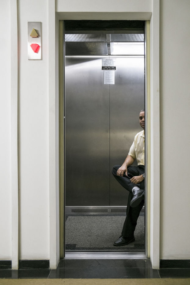 Liftman, or groom as they are often called in the luxury sector. They work mostly in office buildings, in the "Centro" (the business district) as well as at shopping centers and private universities. They job consists of welcoming users and then selecting the appropriate floor. They work seated on a chair which often takes a quarter of the available space. In many cases they are required to stay seated, a directive that can be understood as will to belittle the staff in front of the "customers". As is already the case for doormen, this service is paid by a middle class which can afford it, not only by a wealthy class.