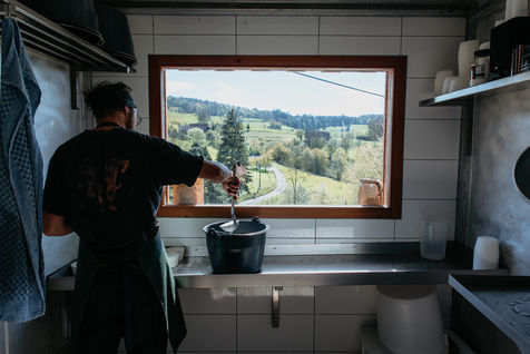 Entre février et août Lucas produit du fromage de chèvres à partir d'une vingtaine de chèvres qu'il élève dans les Vosges. Son ambition, produire un fromage local pour une consommation locale mais tout en ayant une démarche respectueuse du rythme des animaux et de leur bien-être.