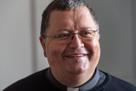 Portraits du Père Jean-Loïc Ollu, recteur de la Cathédrale Notre Dame du Puy au Puy en Velay. C'est de cette ville que part le pélerinage du chemin de Saint Jacques de Compostelle.