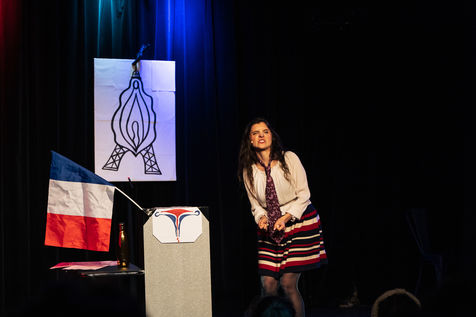 A journey in Matriarchy, a show by Typhaine D, author, actress, director, trainer, coach, and speaker committed to the rights of women, children, animals and ecology. The actress presents once again her show "La Pérille Mortelle" updated with the post presidential election news.