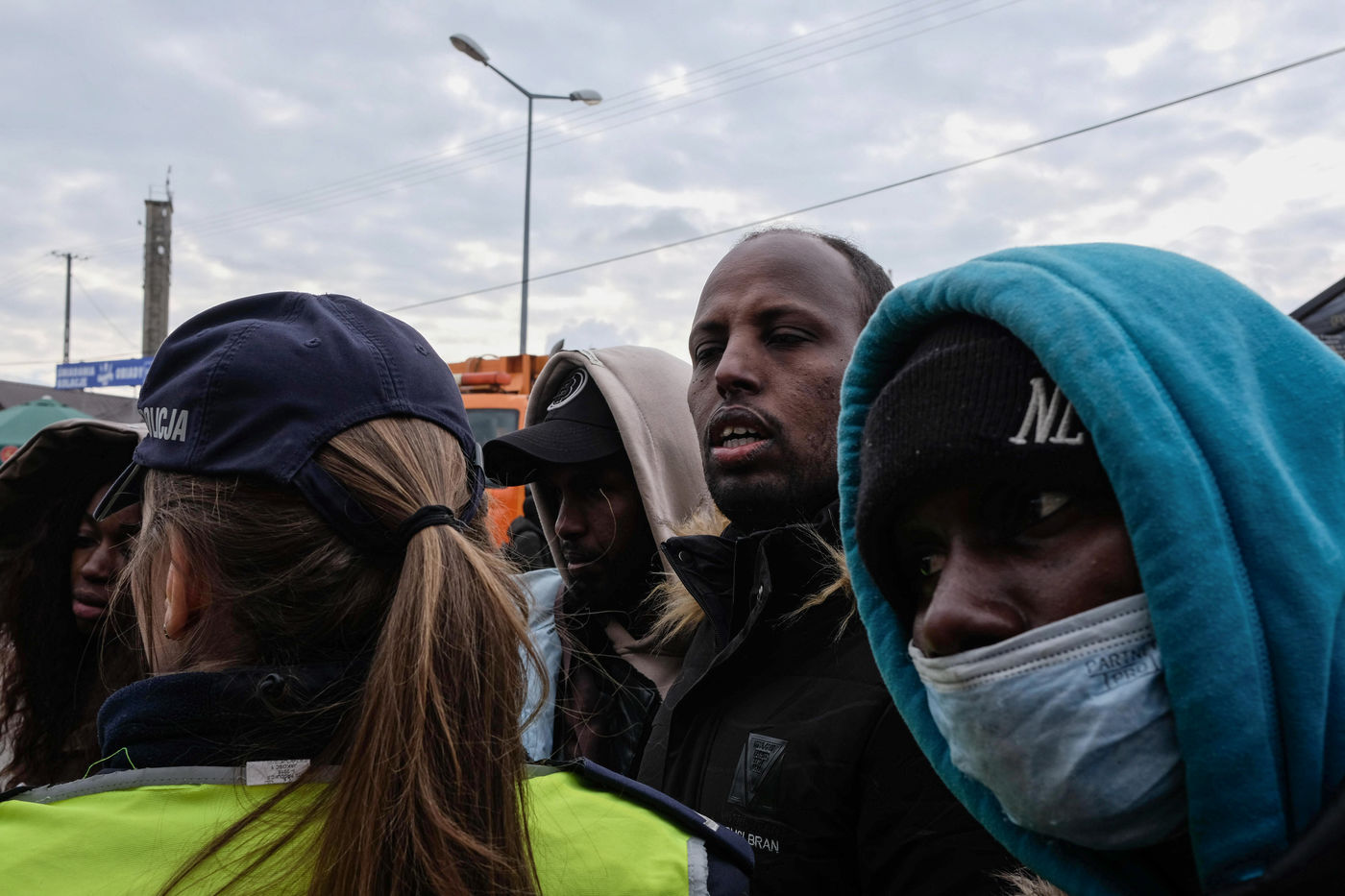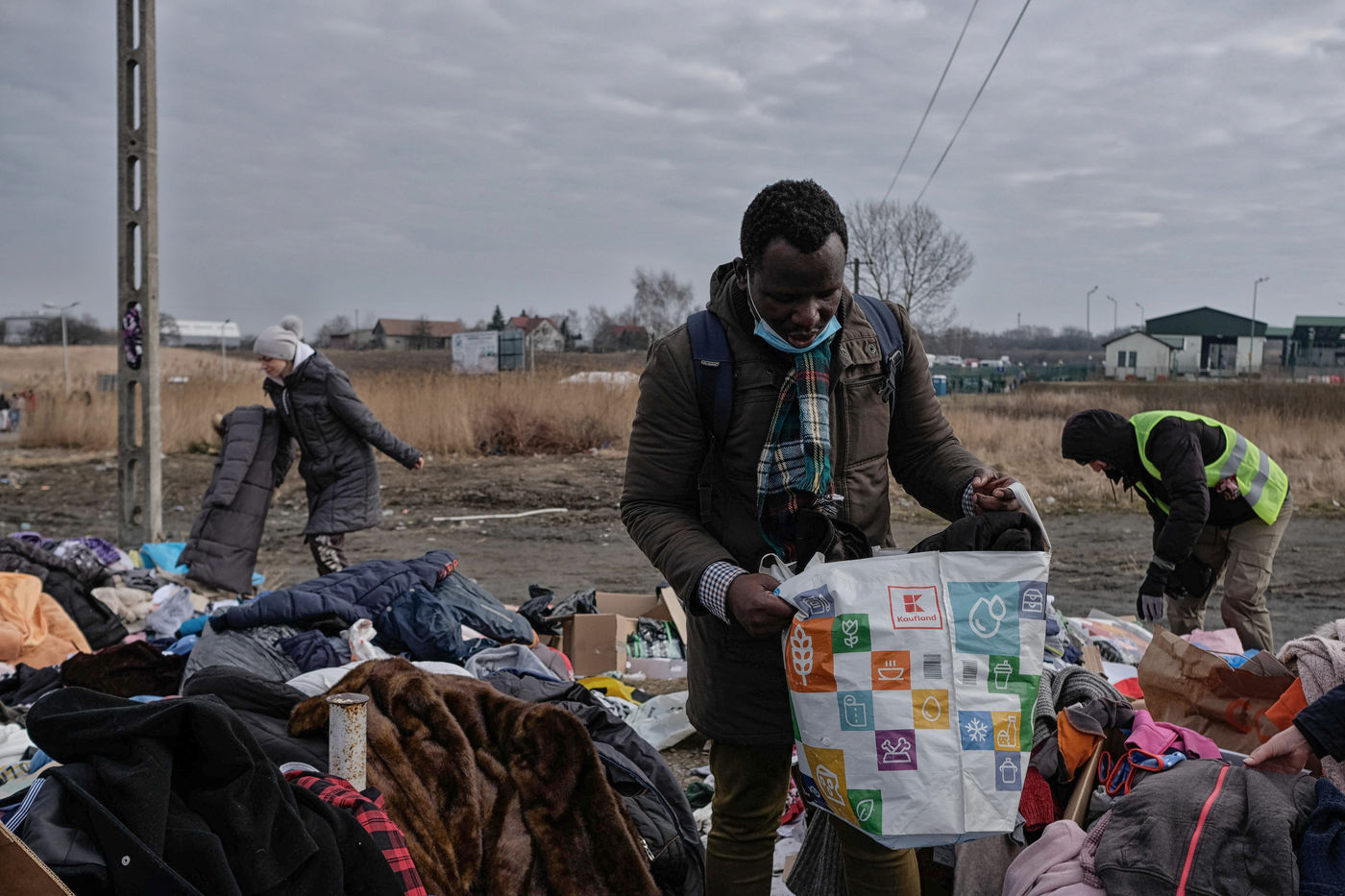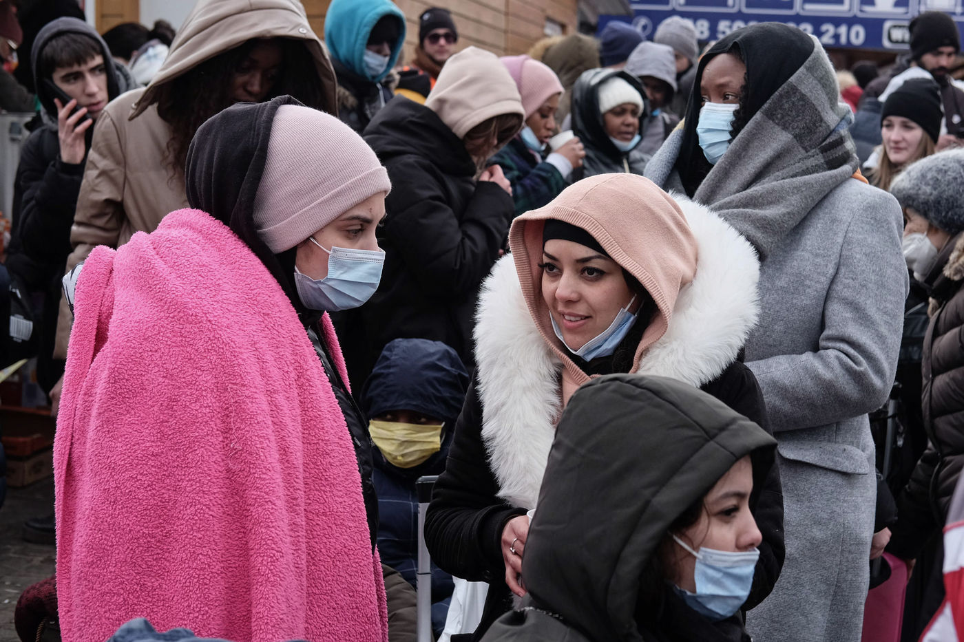 Des réfugiés originaires d'Afrique, d'Asie du Sud et du Moyen-Orient ont déclaré que les gardes-frontières les ont fait attendre pendant des jours pour quitter l'Ukraine, à l'extérieur par un temps souvent neigeux, avant d'entrer en Pologne, affirmant que les officiers de l'immigration ukrainiens, débordés, donnaient la priorité au traitement de ses propres citoyens - principalement des femmes avec des enfants en bas âge. Les fonctionnaires ukrainiens ont déclaré que leur intention était de laisser passer les familles avec de jeunes enfants en premier. En moins d'une semaine, le pays a traité plus de 600 000 personnes, soit beaucoup plus que d'habitude. Les réfugiés africains ont reçu l'ordre de partir à pied et ont été laissés dans le froid pendant 24 à 48 heures, sans abri, avec peu de nourriture ou d'informations sur ce qui se passait.