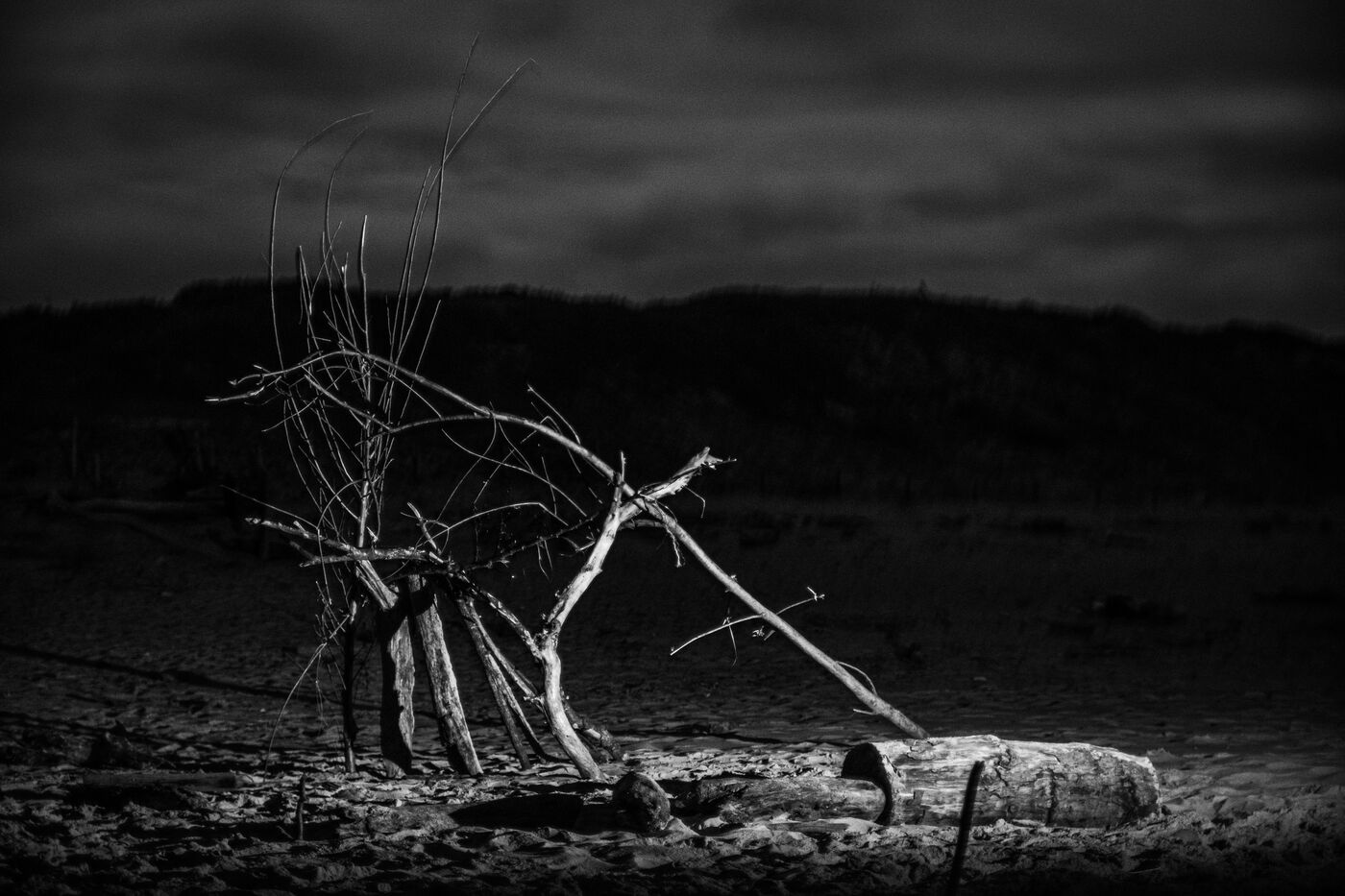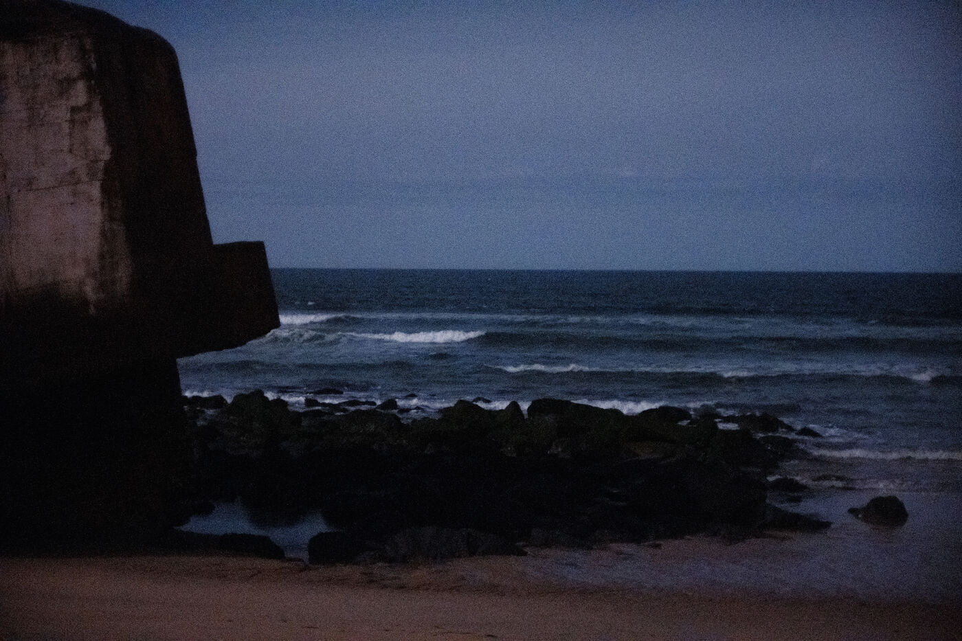 Les Landes sont connues pour leurs plages immenses bordées de dunes à l'apparence plus sauvage que leurs équivalentes basques. Une balade sous la lune de minuit le long de la plage de Santocha à Capbreton a donné l'occasion de se plonger dans la vie nocturne de ces longues étendues de sable. Entre les blockhaus émergés au fil des ans, apparaissent des pêcheurs solitaires et leurs cannes lumineuses, et des constructions de bois mystérieuses, presque mystiques, oeuvres d'habitué.es à l esprit créatif qui érigent des installations bigarrées faites du bois flottant de l Adour échoué sur le sable. L obscurité invitant à la rêverie, on pourrait penser devenir témoin de l atterrissage d êtres et d engins venus d un autre monde...