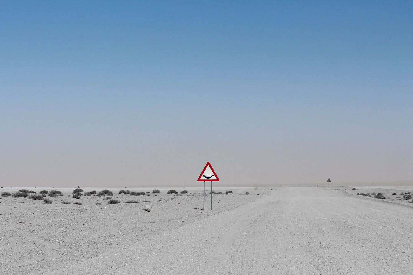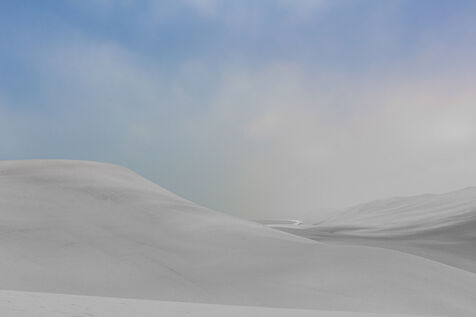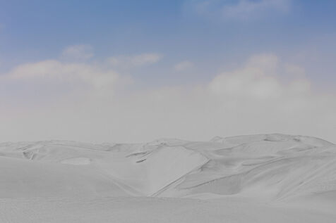 Photographs of deserts in Namibia have been retouched so that the sand becomes as gray as the ashes after a fire. These images are projections: when everything has burned, what will be left? The impression of a nature devastated by fire, where no form of life remains. Grey ashes under a blue sky, human bones, and a sense of calm.