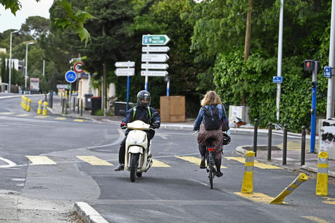 Les aménagements provisoires réservés aux cyclistes ne cessent de s etendre en ville comm en campagne. Illustration de signalisations de pistes cyclables provisoires et definitives.