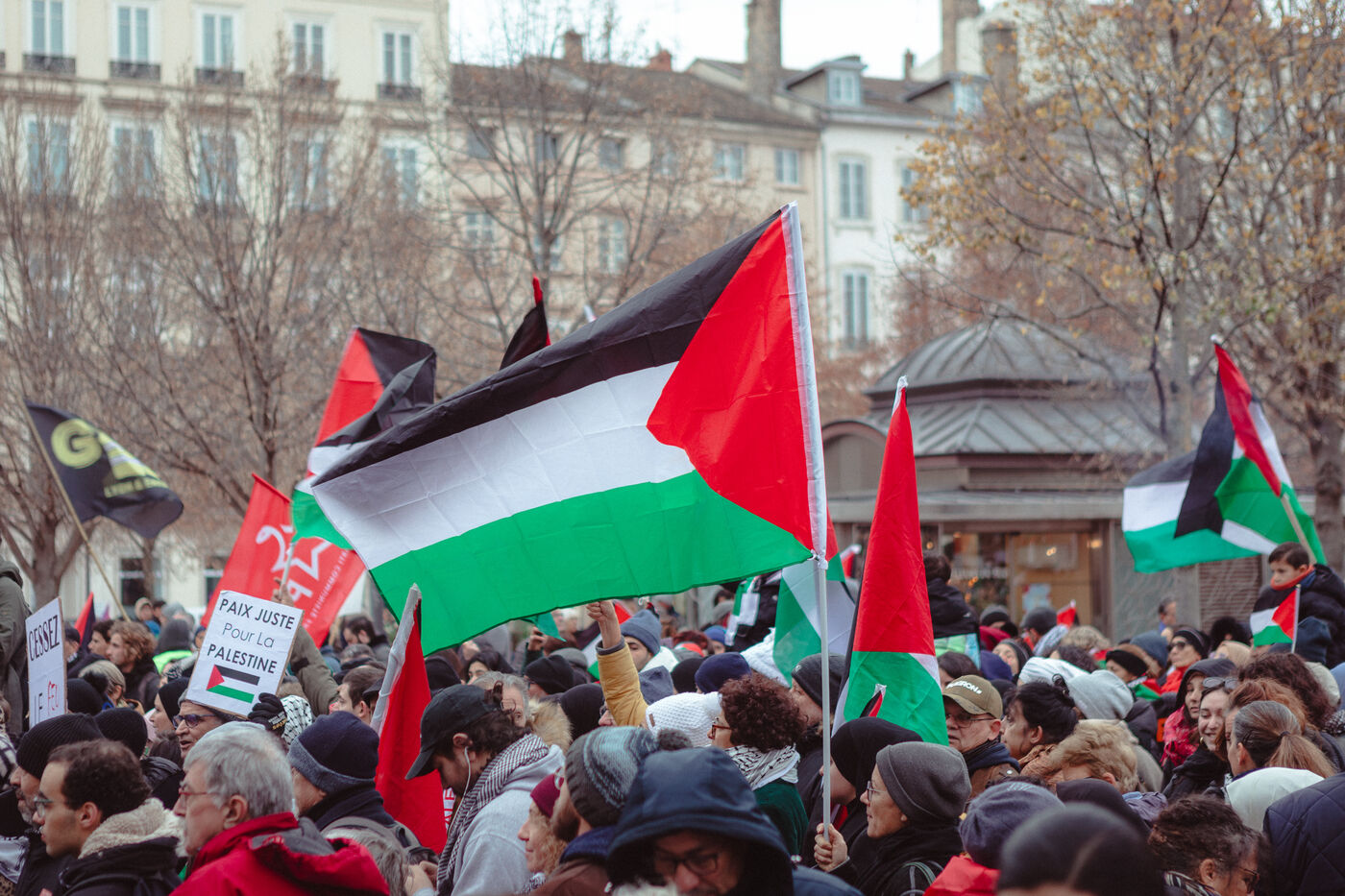 Demonstration on December 16, 2023 starting from Place Bellecour, in support of the Palestinian people and calling for an immediate ceasefire in Gaza.