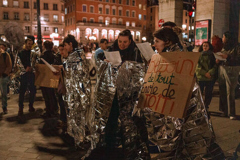 Rally called by the collective Hébergement En Danger (HED), a group of social workers working in emergency accommodation in Lyon.