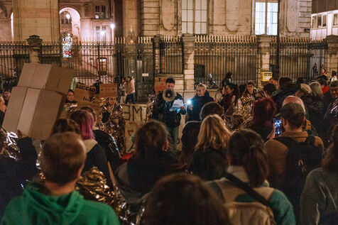 Rassemblement à l'appel du collectif Hébergement En Danger (HED), collectif de travailleuses sociales et travailleurs sociaux de l'hébergement d'urgence à Lyon.