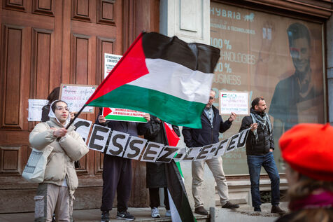 GATHERING OF THE COLLECTIF 69 PALESTINE IN FRONT OF THE CCI