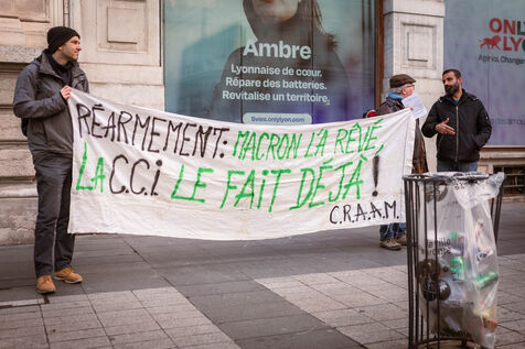 Gathering in front of the Lyon CCI (Chamber of Commerce and Industry) called by Collectif 69 Palestine for the global day of action against arms companies complicit in genocide, to demand an end to the arming of Israel's criminal army.