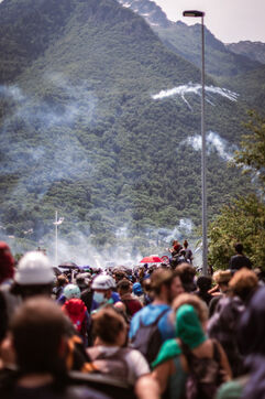 Nearly 5000 people gathered at La Chapelle in Savoie's Maurienne Valley for the international and popular mobilization against the new Lyon-Turin high-speed rail line on June 17, 2023. Despite prefectoral bans and police violence, including the use of GM2L warhead grenades. Some fifty people were seriously injured.