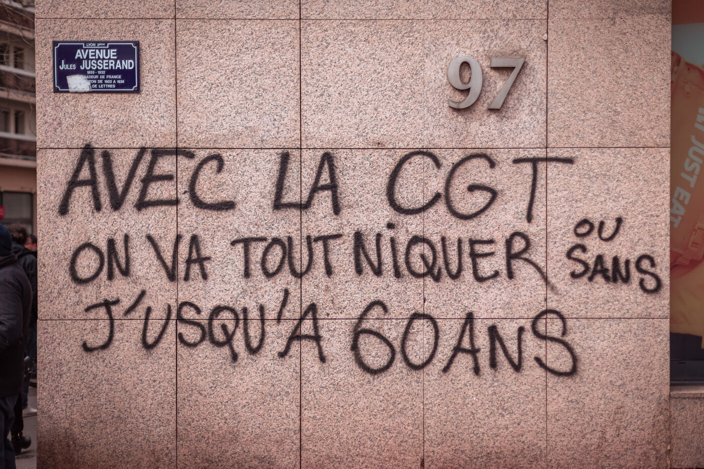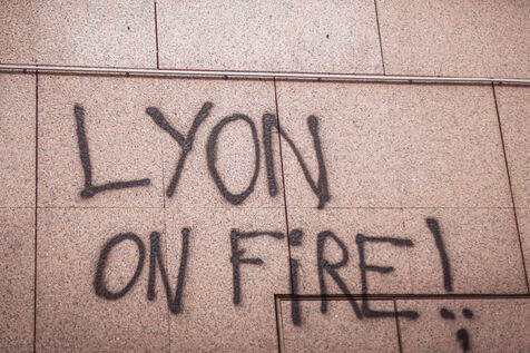 Graffiti spotted on the walls of Lyon, notably during demonstrations against pension reform from January to May 2023.