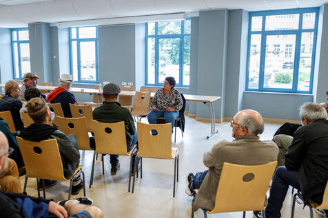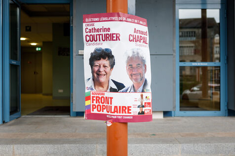 Réunion publique du Nouveau Front Populaire en présence de la député sortante LFI (La France Insoumise) Catherine Couturier à Aubusson en Creuse le 2 juillet 2024 à la salle de conférence La Passerelle.