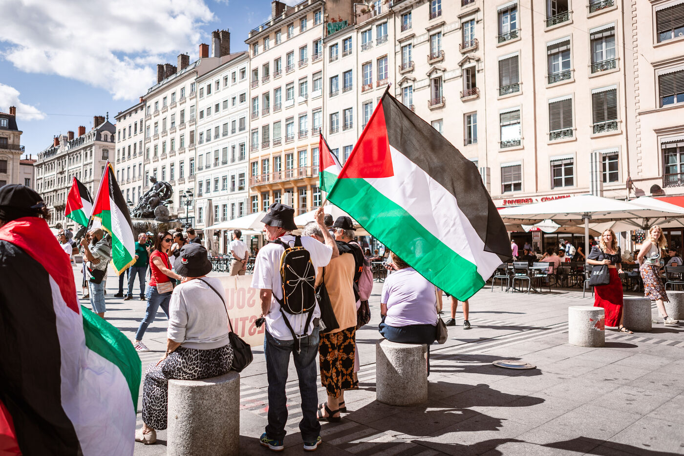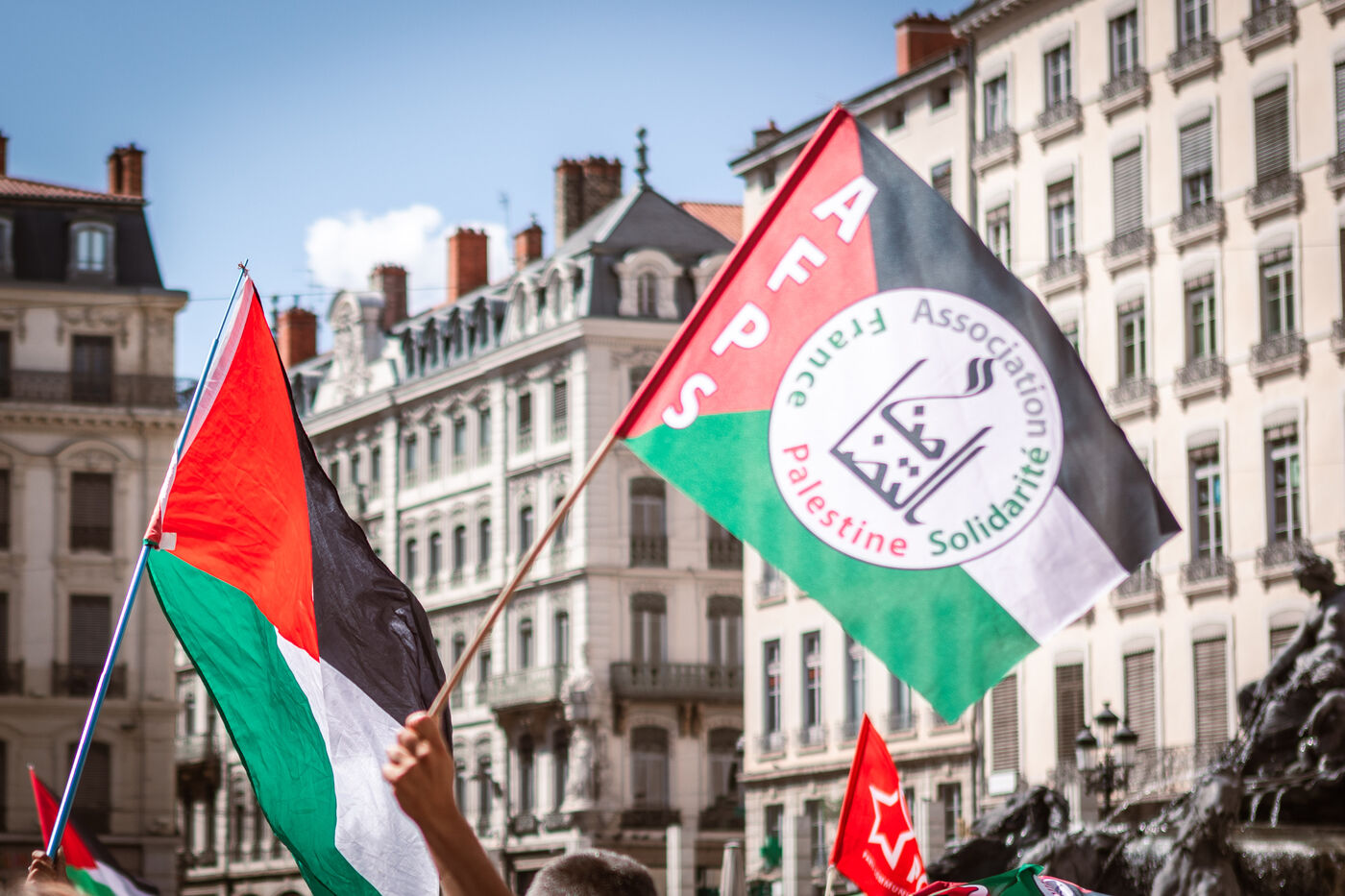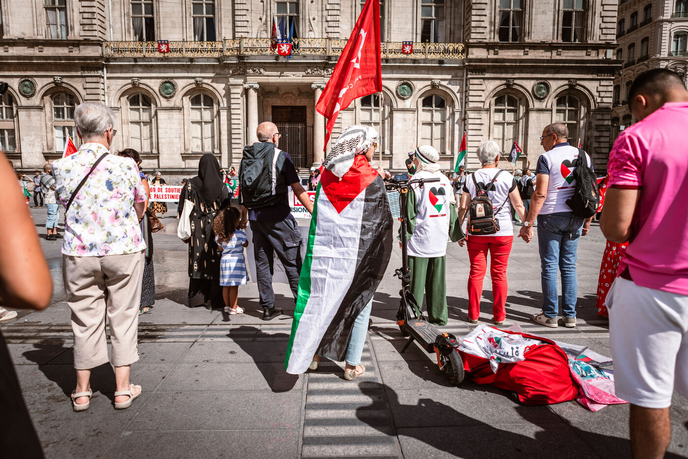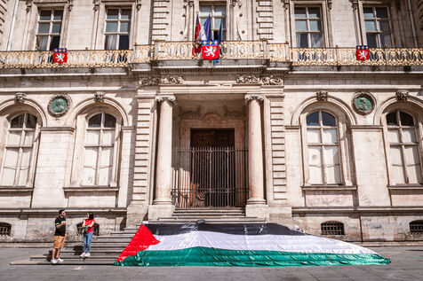 Arrival of the Palestine Liberation Flag at Place des Terreaux in Lyon on August 25, 2024.