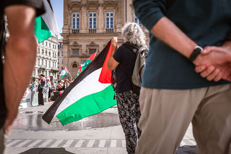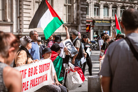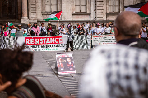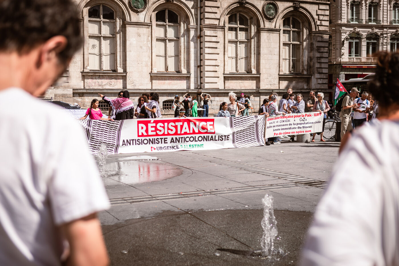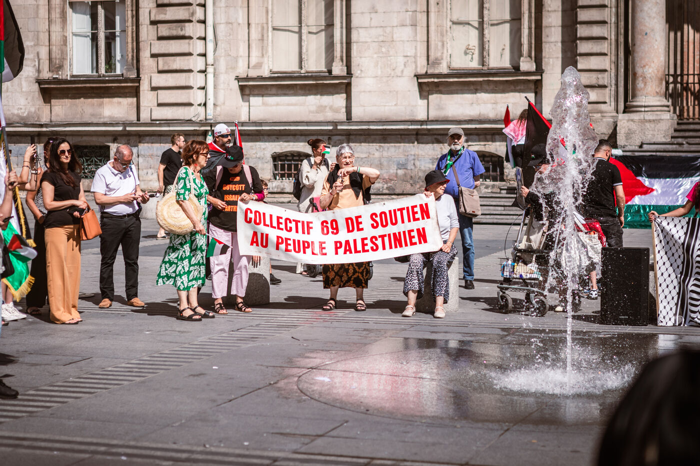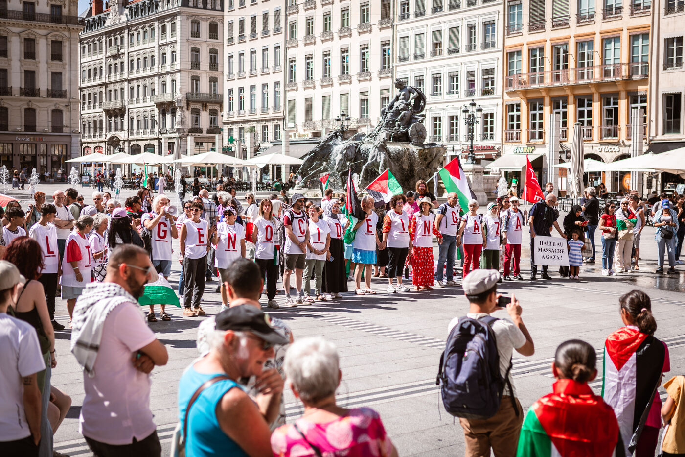 Arrival of the Palestine Liberation Flag at Place des Terreaux in Lyon on August 25, 2024.
