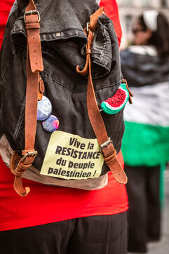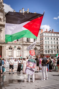 Arrivée du drapeau de la libération de la Palestine sur la Place des Terreaux à Lyon le 25 août 2024.