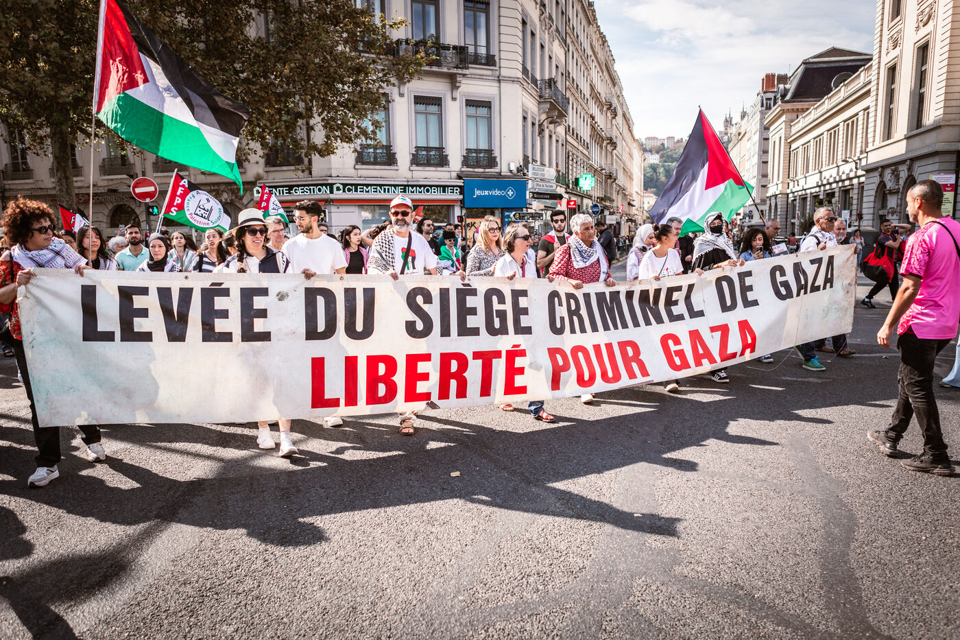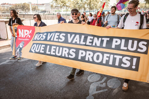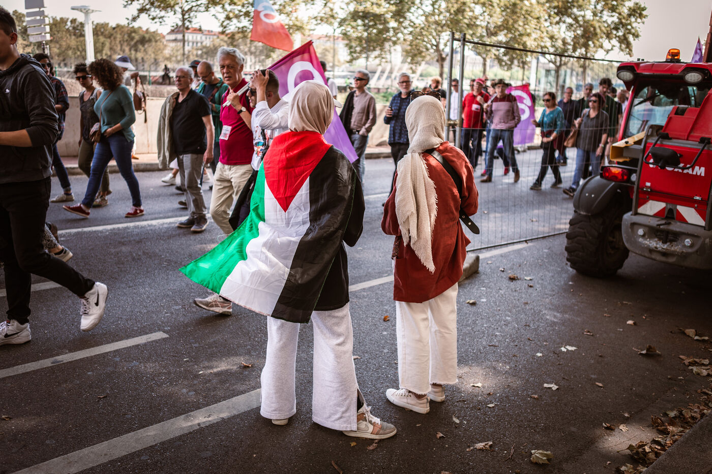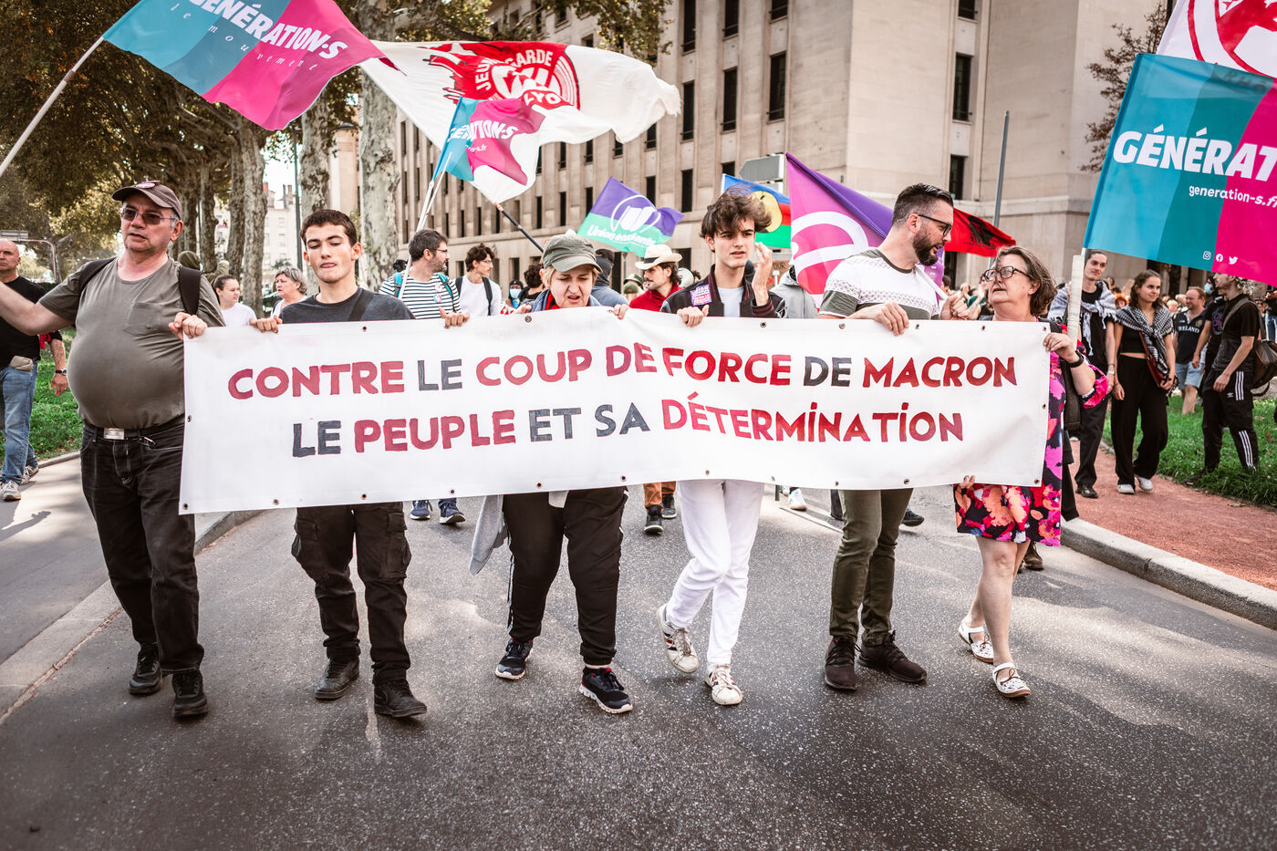 Suite à un appel de l’intersyndicale à une mobilisation nationale contre le gouvernement Macron-Barnier, une manifestation s’est tenue samedi 21 septembre 2024 à Lyon en France.