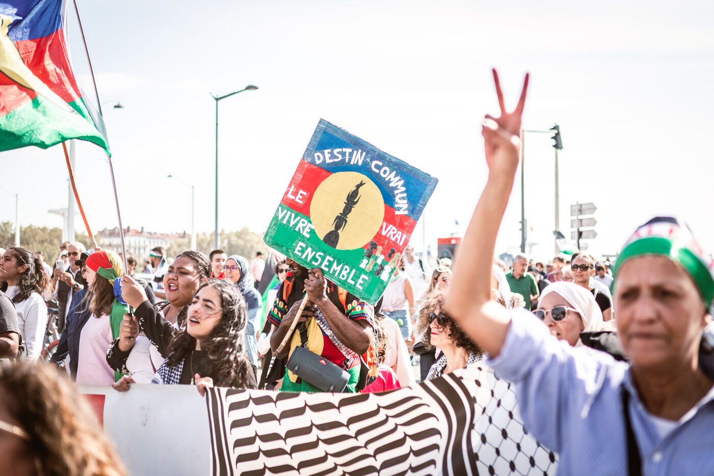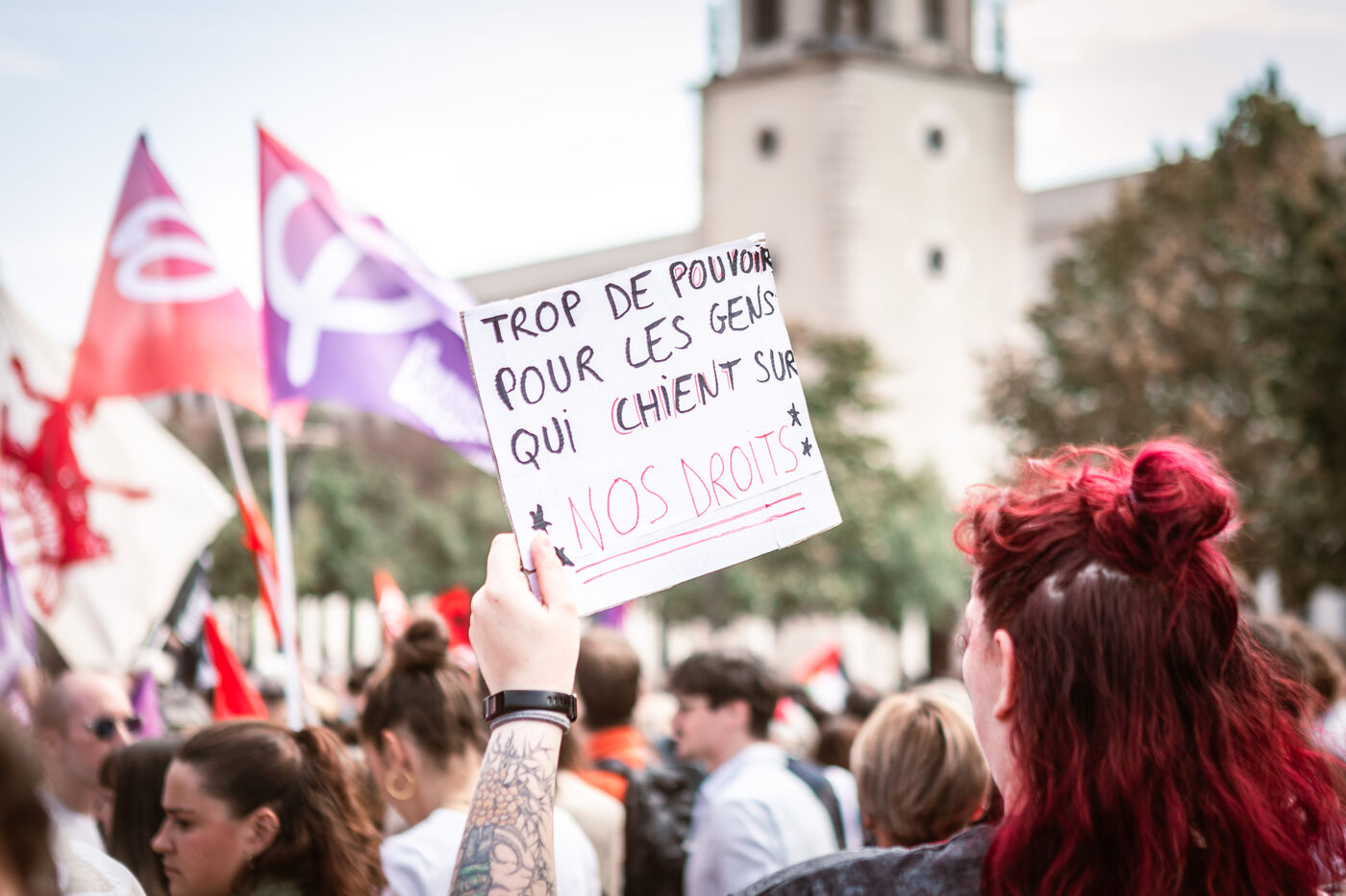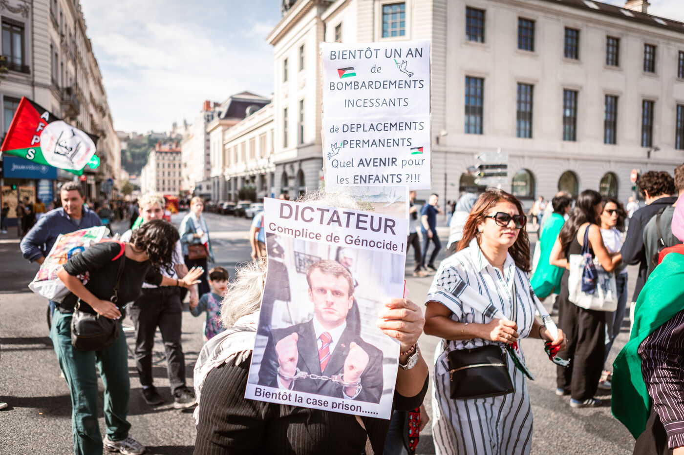 Suite à un appel de l’intersyndicale à une mobilisation nationale contre le gouvernement Macron-Barnier, une manifestation s’est tenue samedi 21 septembre 2024 à Lyon en France.