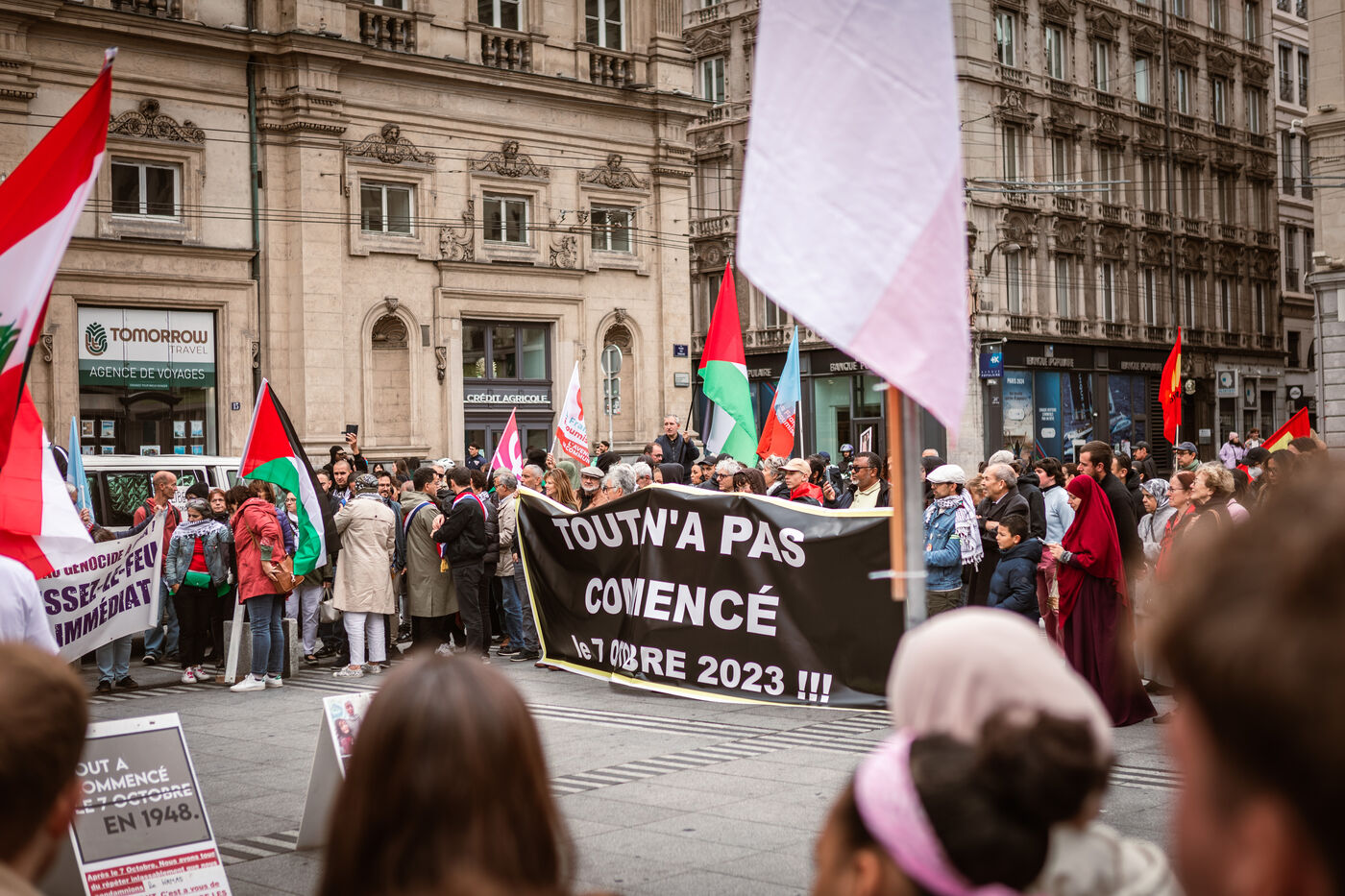 A rally in support of the Palestinian and Lebanese people took place this Saturday, September 28, at Place des Terreaux in Lyon, France.