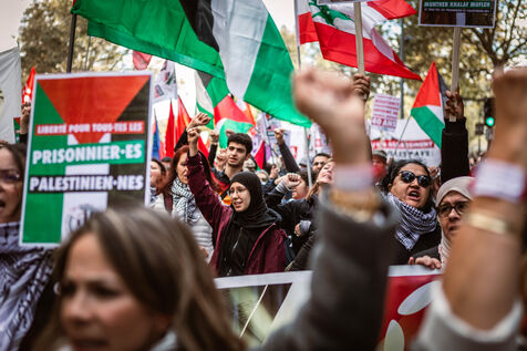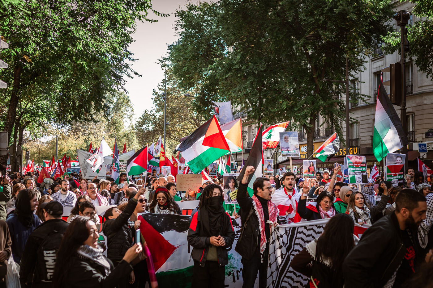 Demonstration in support of the Palestinian and Lebanese peoples in Paris on 5 October 2024.