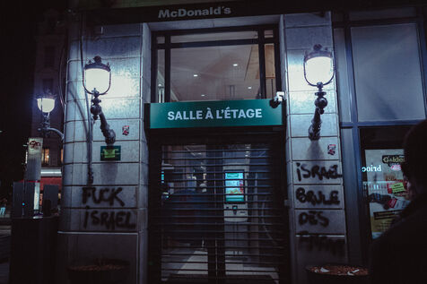 Une manifestation en soutien au peuple palestinien a eu lieu à Lyon en France, le 14 octobre 2024. Des personnes se sont rassemblées suite aux horreurs de la nuit du 13 octobre à Gaza pour dénoncer la complicité des médias dominants et de l'occident.