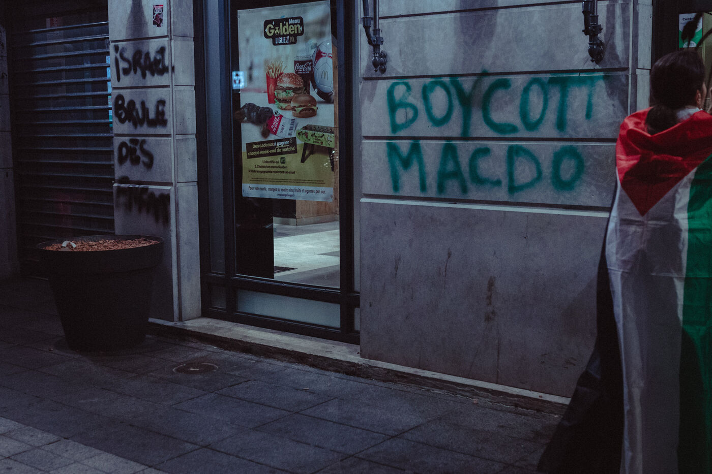 A demonstration in support of the Palestinian people took place in Lyon, France on 14 October 2024. People gathered following the horrors of the night of October 13 in Gaza to denounce the complicity of the dominant media and the West.