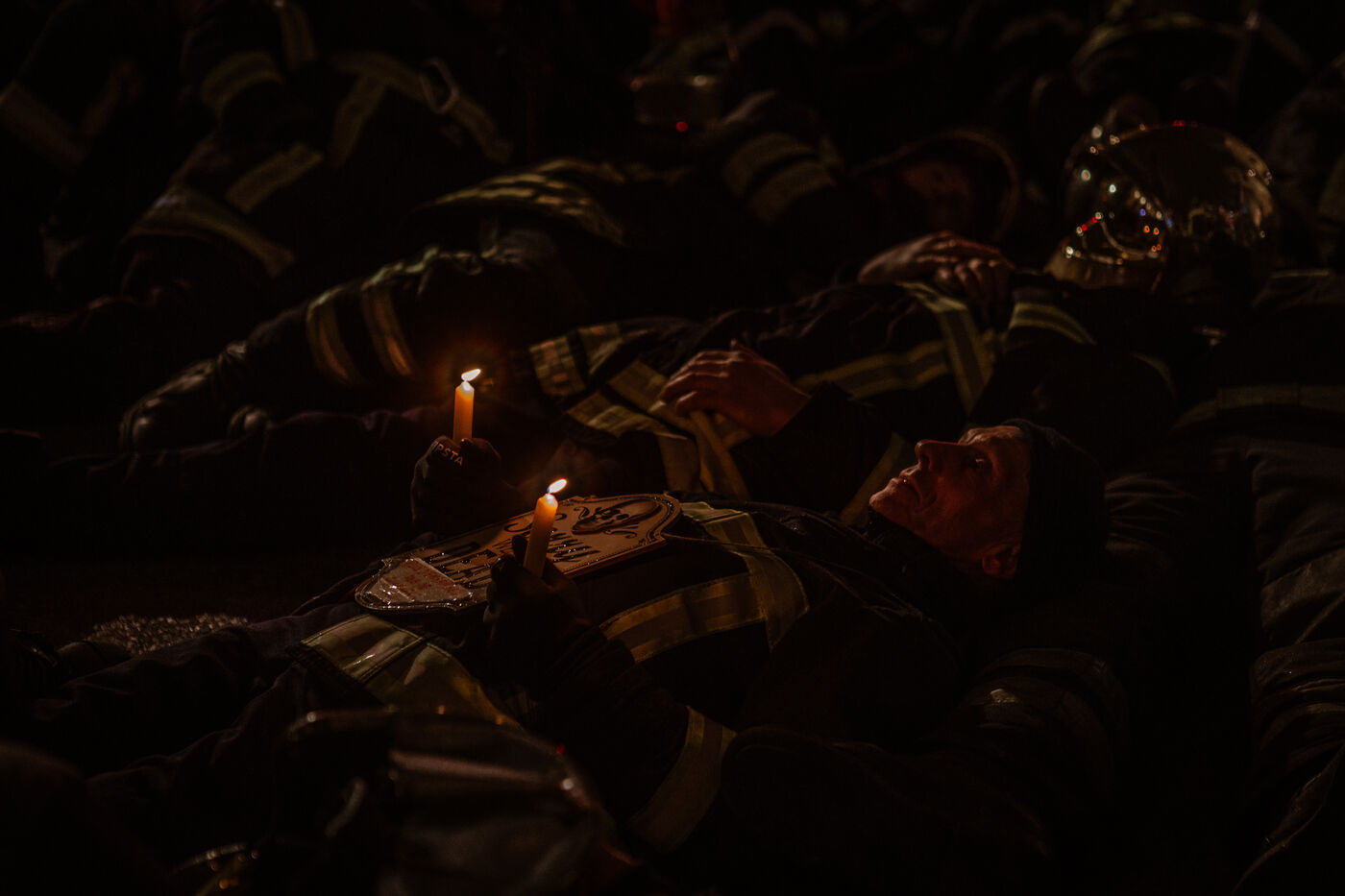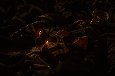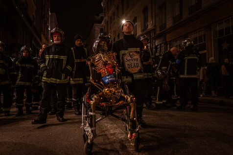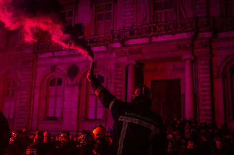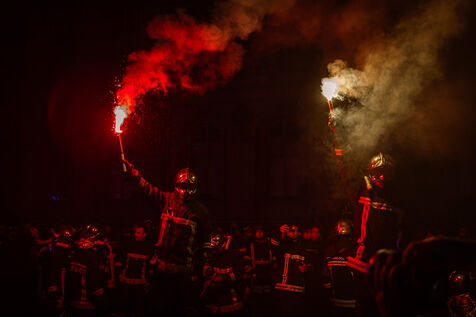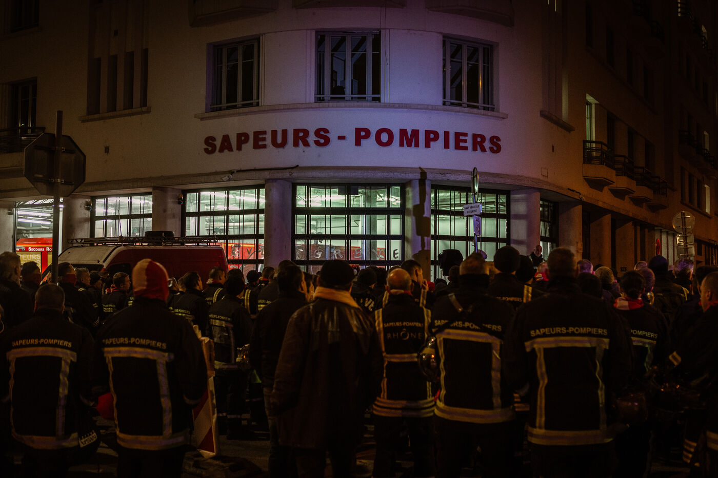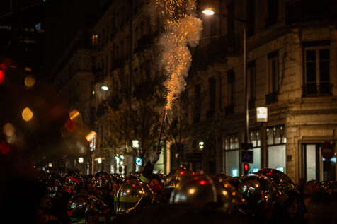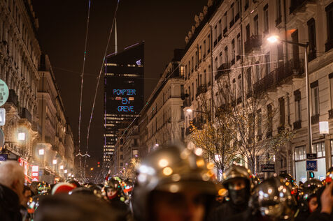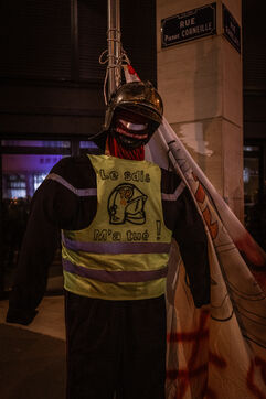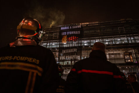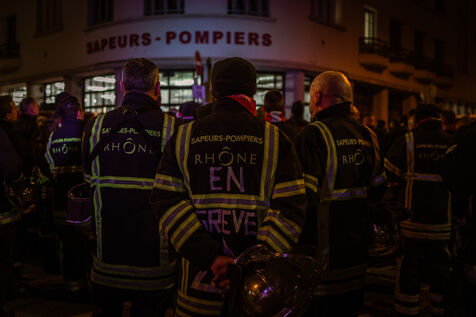 Action of the firefighters of Lyon on the first evening of the festival of lights. One of them, Lionel, went on a strike for the rest of the day. On strike for almost 2 months, they are demanding more staff: the number of staff is decreasing while interventions increase. They demonstrated in Lyon on 5 December 2024.