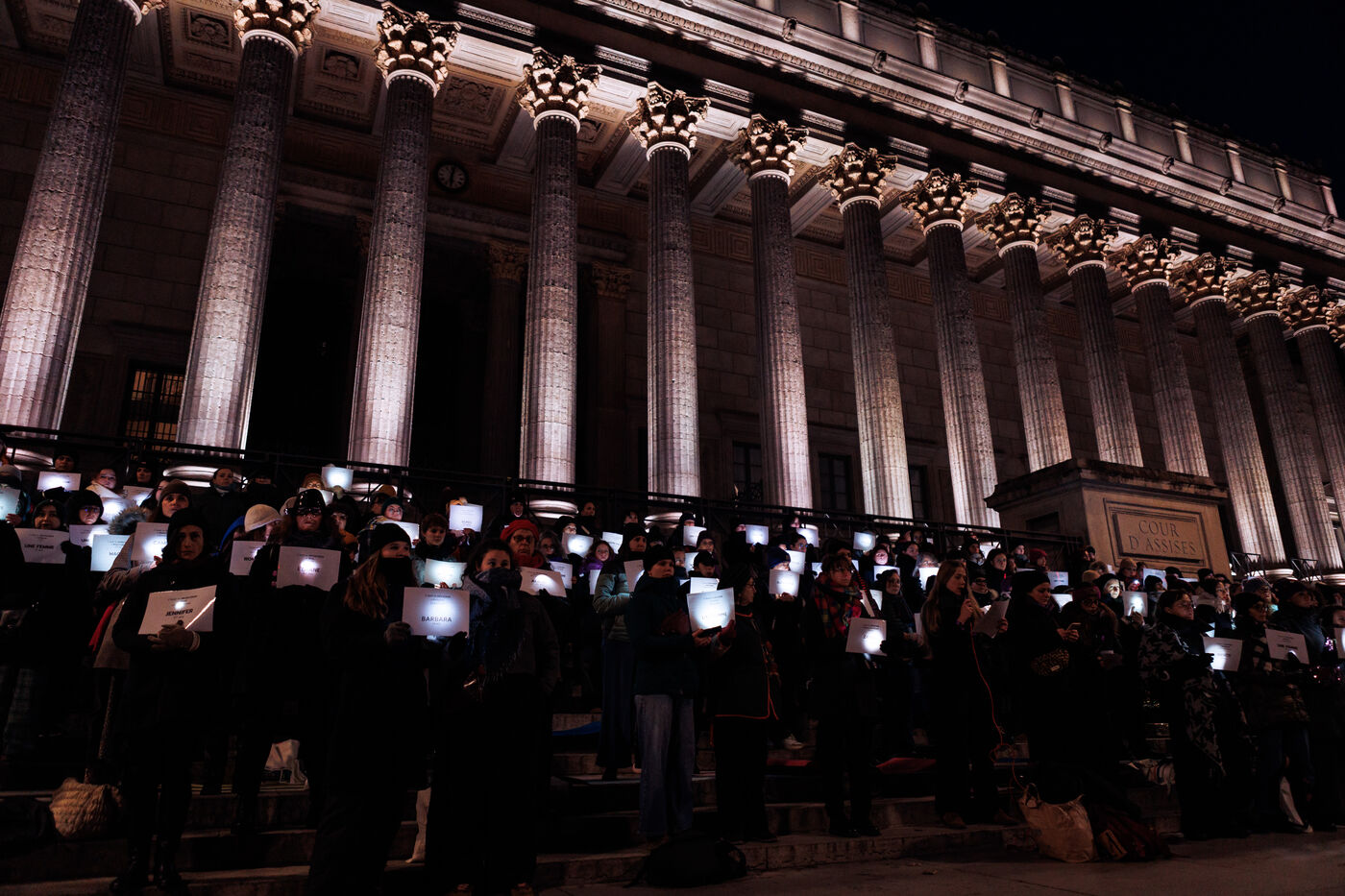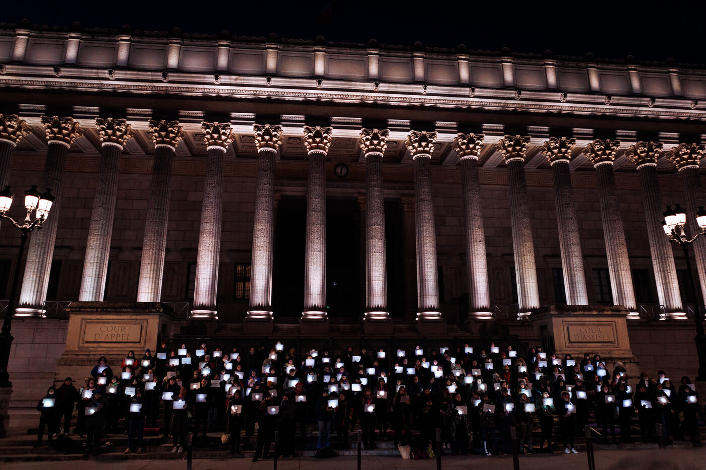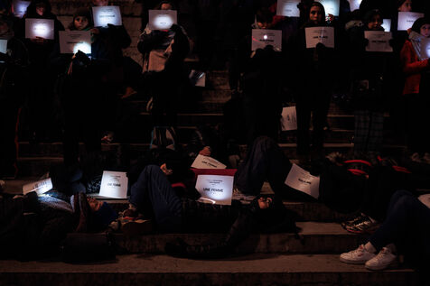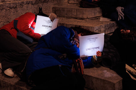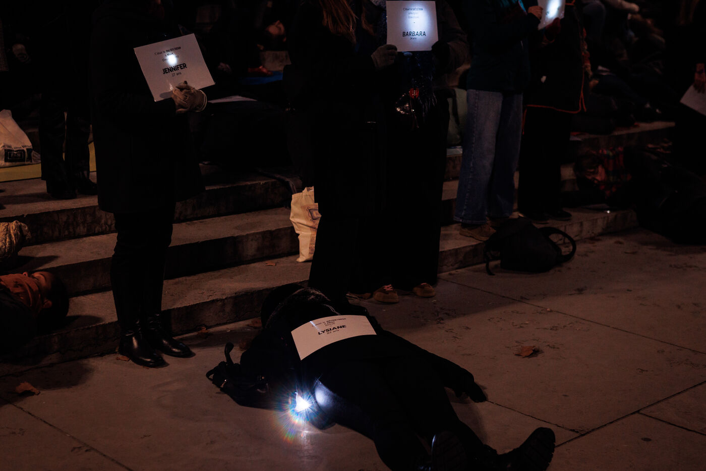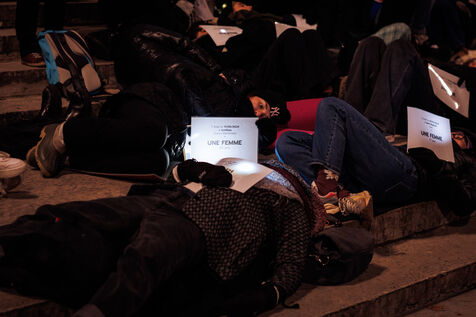 A die-in organized by the feminist association Nous Toutes Rhône took place in front of the Palais de Justice of Lyon on January 11, 2025 to return femmage to victims of femicides in 2024 in France.